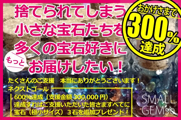 このネクストゴールが達成できれば、ご支援いただきました皆さまに宝石(極小サイズ)3石をプレゼントさせていただきますので、引き続き、応援を宜しくお願いいたします!!