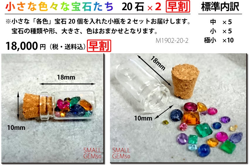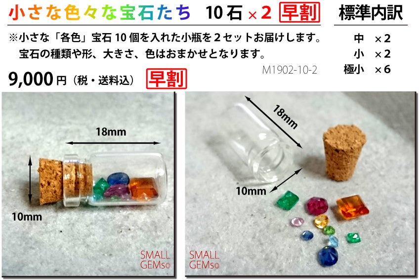 2.小さな色々な宝石たち「10石」×2【早割】(品番:M1902-10-2)小さな宝石たちの中から、「様々な色」の宝石を選別しました。