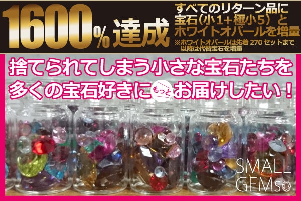 お約束しておりましたとおり、ご支援いただきました皆さまのすべてのリターン品に、宝石(極小サイズ)3石を増量プレゼントさせていただきます。