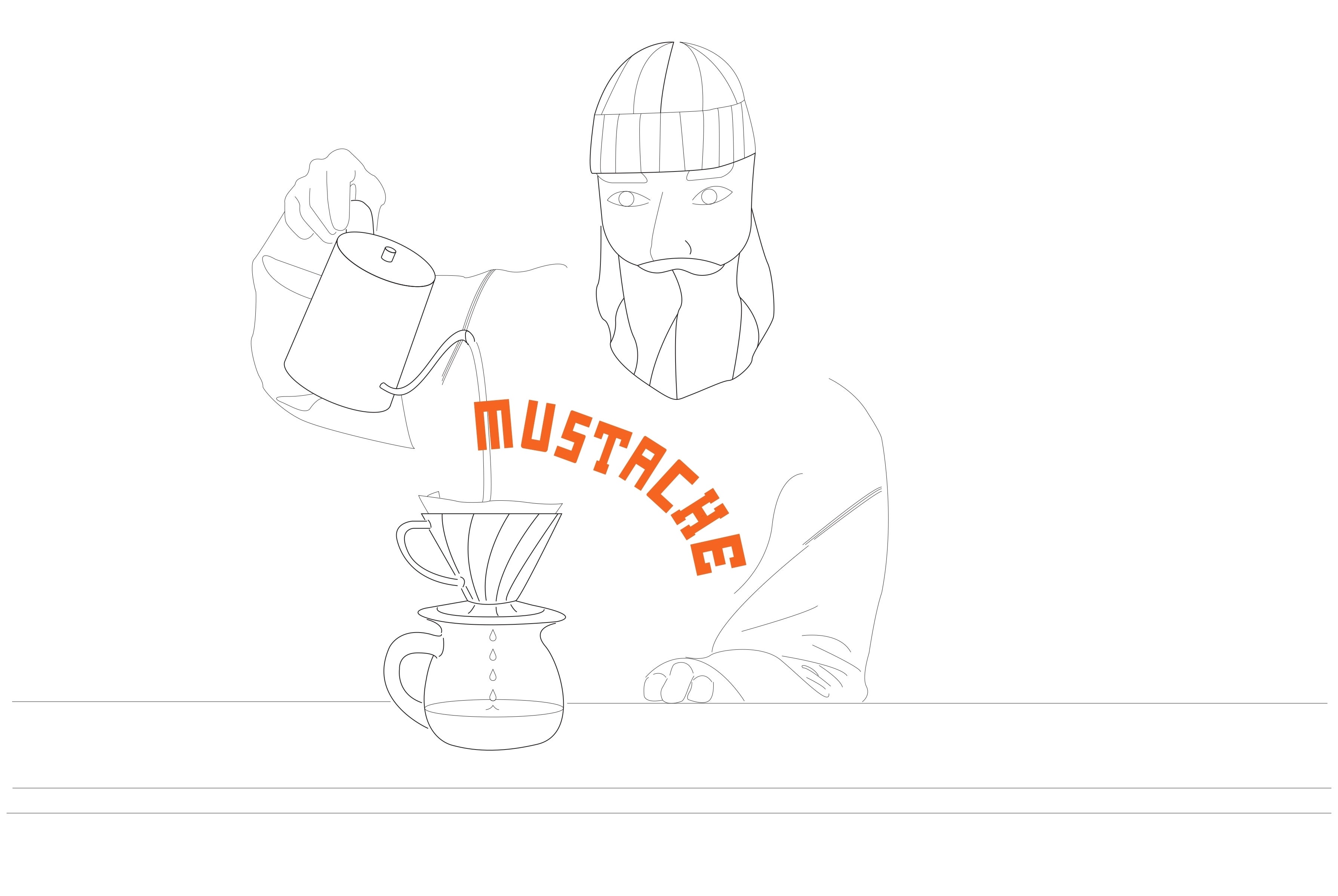 「こだわり」「落ち着き」「面白み」を用いて造るカフェです。カフェ(ドリンク)はもちろん、店の内装・スタッフ・商品・イベントなど、他のお店と違ったモスタッシュらしさを追求します。例えば、スタッフは下の絵のようなモスッタッシュ感がある人を探します 笑