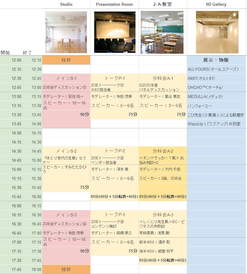 全9枠のセッション(75分・90分)+休憩時間(30~45分)のネットワーキング