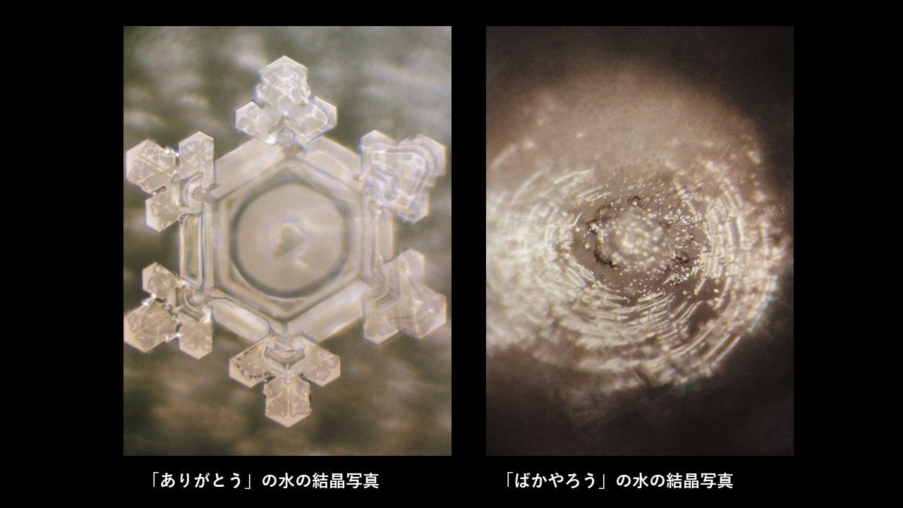 しかし、江本勝は『水からの伝言』こそが、世界平和を実現するための重要なツールだと考えていました。なぜなら水は情報を受けた時に、水の結晶を通じてさまざまな形に変化しますが、良いエネルギーの情報を受けた時に水の結晶は美しい形になり、悪いエネルギーの情報を受けた時に水の結晶は醜い形になるという傾向があったからです。このエネルギーというのは、私たちの意識であり、そして言葉にも置き換えられます。私たちのポジティブな意識、言葉、そして祈りこそが美しく平和な現実世界を創るということを結晶写真が証明してくれました。
