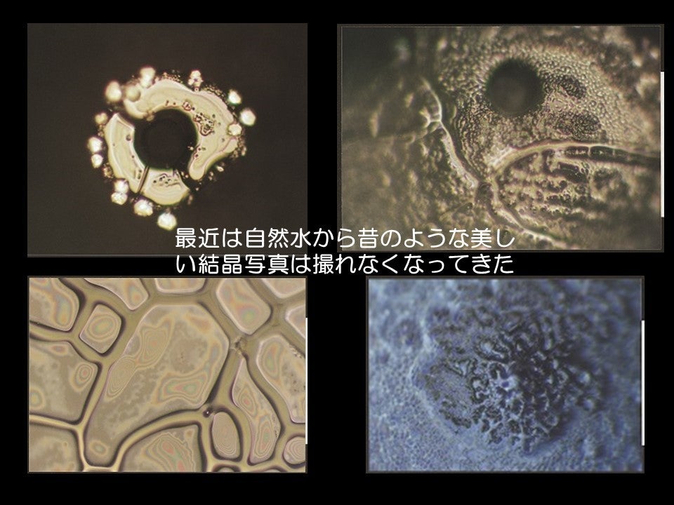 江本勝亡き後も、私どもは国内外のさまざまな水の氷結結晶写真をこつこつと撮影してきました。清らかな水は美しい結晶を見せてくれますし、汚れてしまった場所や荒れている土地のお水の多くは結晶の形が崩れてしまっています。また、以前はきれいな結晶写真が撮影できた場所の水ですら、今ではそのときのように美しい結晶写真が撮影できなくなっている場合もあります。