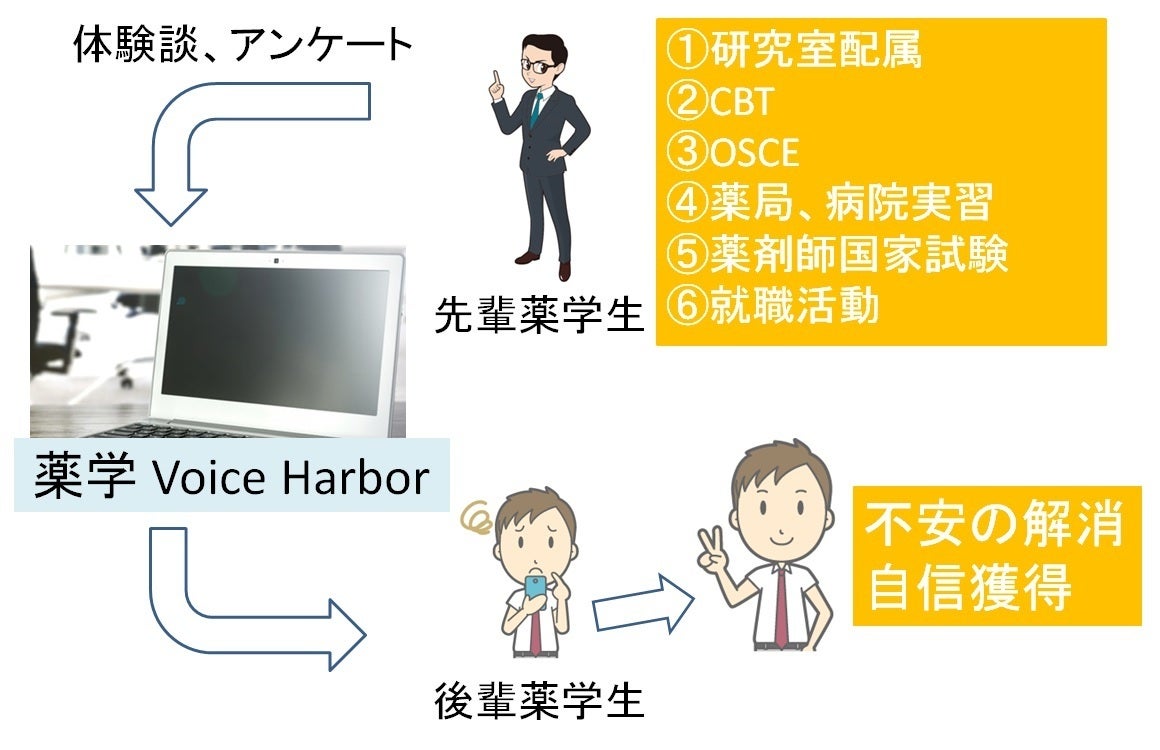 そこで、「薬学 Voice Harbor」を作り、後輩薬学生の役に立ちたいと思いました。