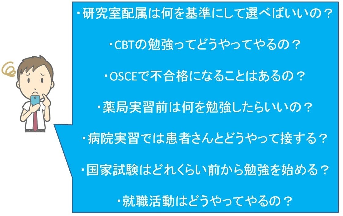 乗り越えなければならない壁がたくさんある薬学生にとって、先輩の体験談やポイント解説などがあればどれほど役に立つと思います。