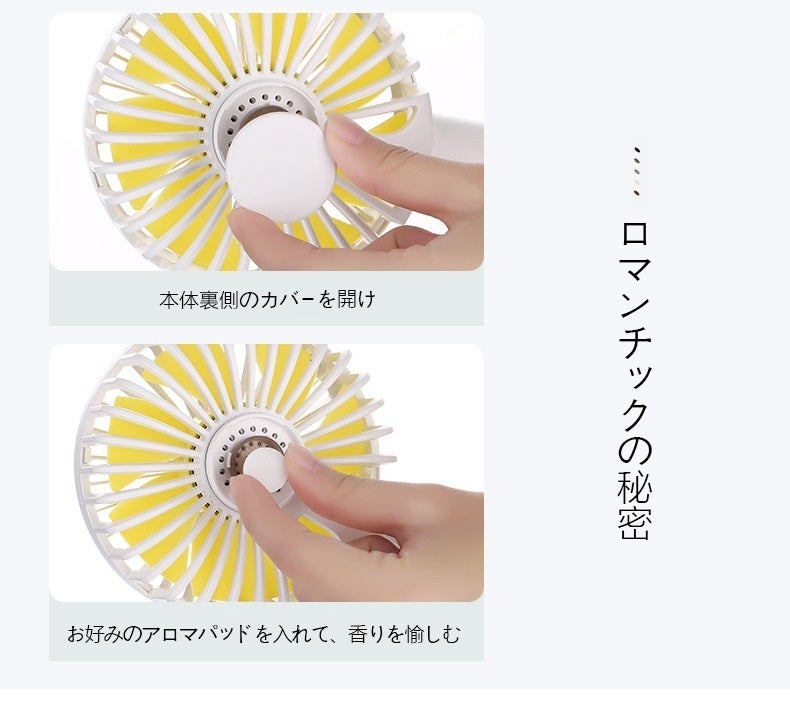 弊社独自でハンディー扇風機について情報収集を行いました、多くの方から「首振り機能」、「細かな風量調整」、「アロマテラピー機能」を追加して欲しいというご意見を沢山頂きました。今度の商品は上記の三つの機能をすべて加えました。