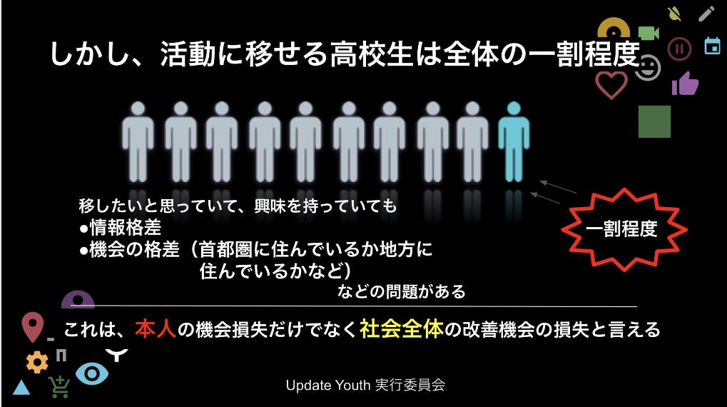 このプロジェクトは、現状の多数を占める「受験と部活だけの10代」ではなく、