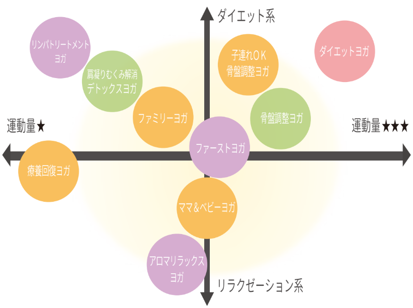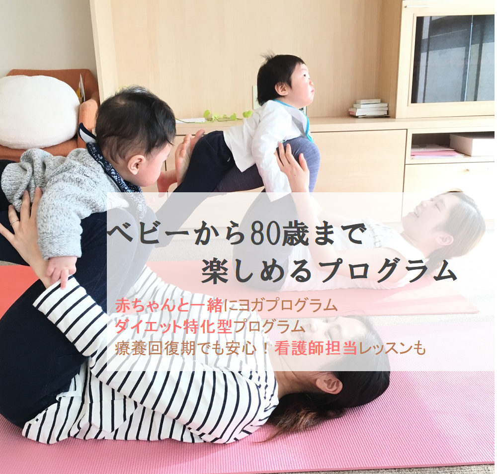 ベビーヨガをはじめ、産後ヨガ、子連れヨガなどお子様がいても気軽に通えるクラスから、ダイエットしたい方向けのクラス、骨盤調整や肩こり解消ヨガ、その他アロマを使った癒しのクラスなど多くの方に自分に合うプログラムを見つけて頂ける内容です。