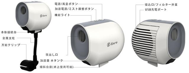万能クリップを使用しないときには、卓上に置くだけで、ユーザーの顔に清浄した空気を送り込むことができます。