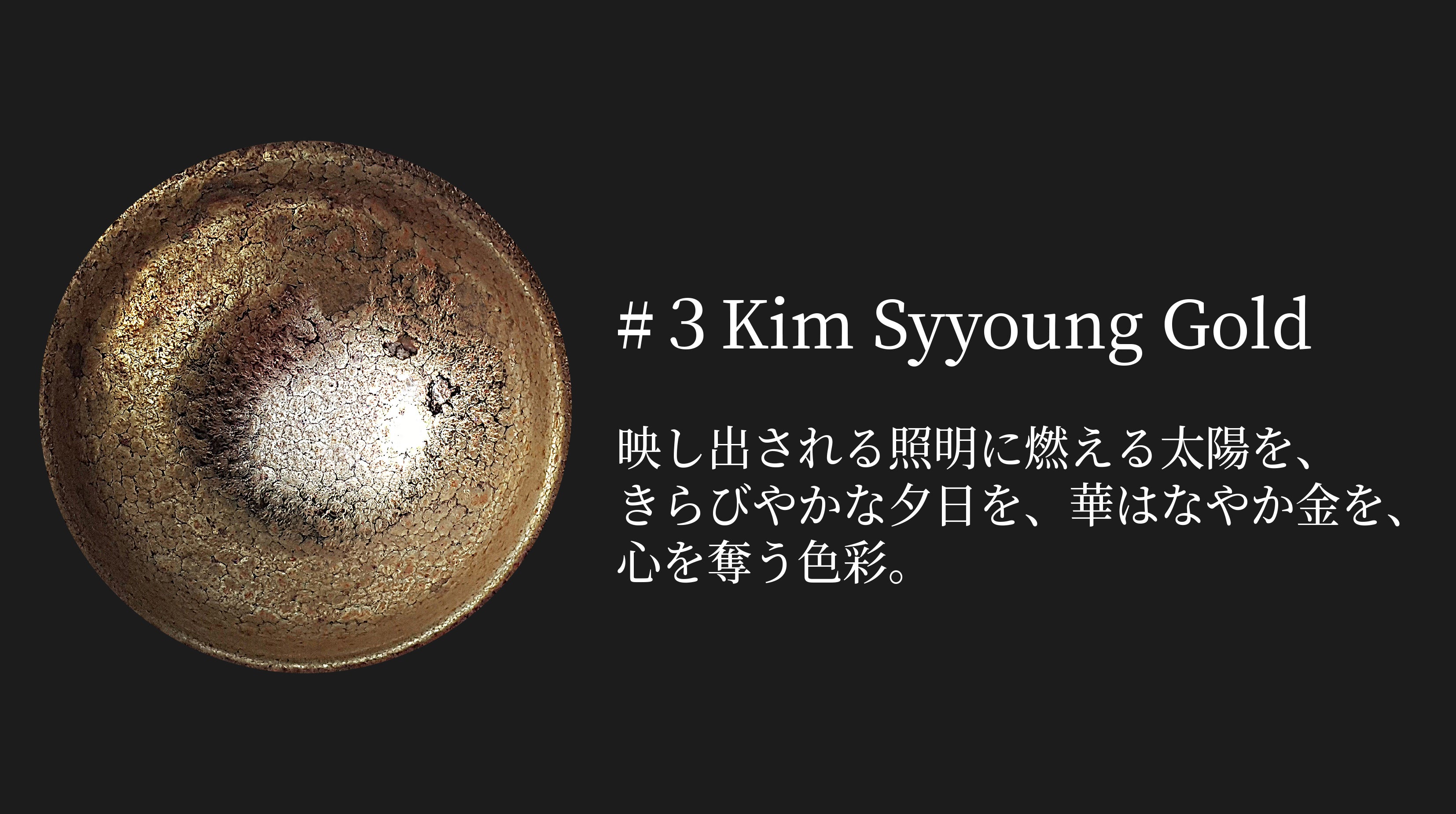 茶碗の表面は驚くことに、色と模様を描いたり、化学的の釉薬による色彩ではありません。キム・シヨン職人の30年間の激しい窯研究によって得られた独自の技術力で作り上げたものです。