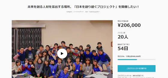 支援していただいた皆様には、「応援せずにはいられない!」「熱い6日間を創り継いでください」「期待しています!」などの暖かいお言葉をいただきました。有難く一つ一つのメッセージを読ませていただいております。当プロジェクトを皆様の期待にお応えできるような場所にすべく、私たち日本を創り継ぐプロジェクト実行委員会も精進いたします。