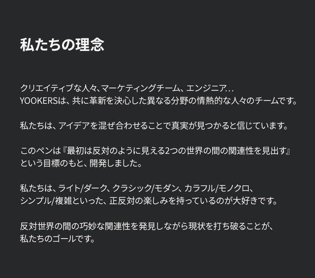 「Yookers-Corus」に興味を持って頂いた皆様!姉妹シリーズの「Yookers」についてもご紹介させて頂きます。クセになる書きごごちが評判の「Yookers」は、「Yookers-Corus」とは違い回転式のキャップが特徴です。またリピート購入のお客様が多く、異なるカラーのペン本体、異なるサイズのペン先を、追加でお買い求めいただいております。「Yookers-Corus」と「Yookers」のセットでみなさまの「ペンライフ」がより一層楽しいものになれば幸いです。