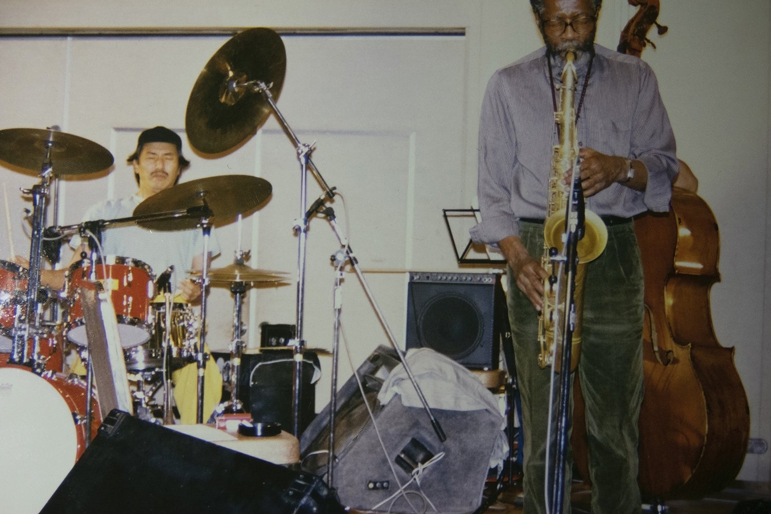 alfieでの来日公演で演奏するジョー・ヘンダーソンと日野元彦氏