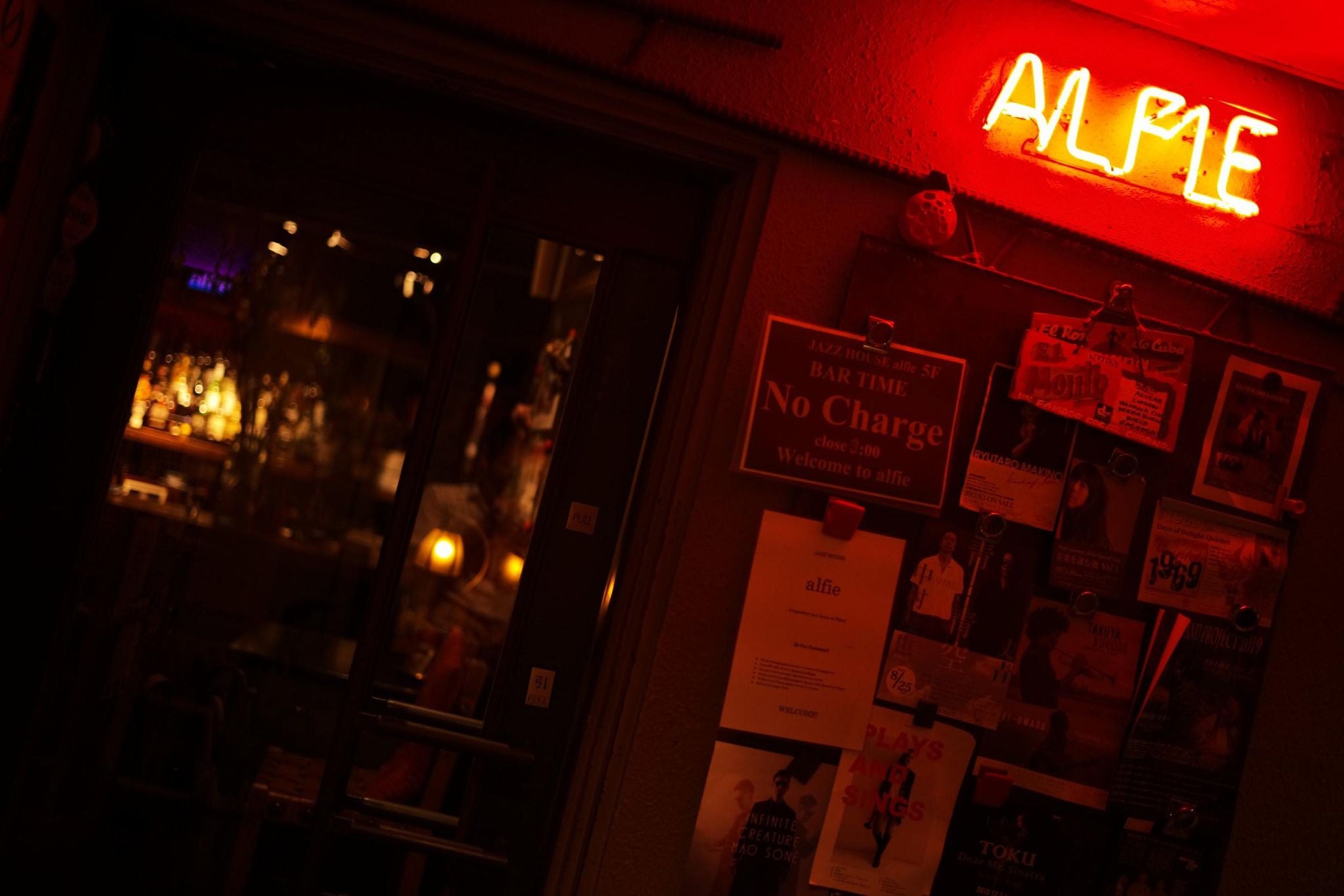 また、ミュージシャンとお客様、そしてalfieのママやスタッフとの距離感は近く、不思議と落ち着いてリラックスできる空間で、演奏終了後のバータイムには、お客様や遊びにきたミュージシャンたちがお酒を飲みながら音楽について語り合い、店内は常に笑顔と音楽に溢れています。