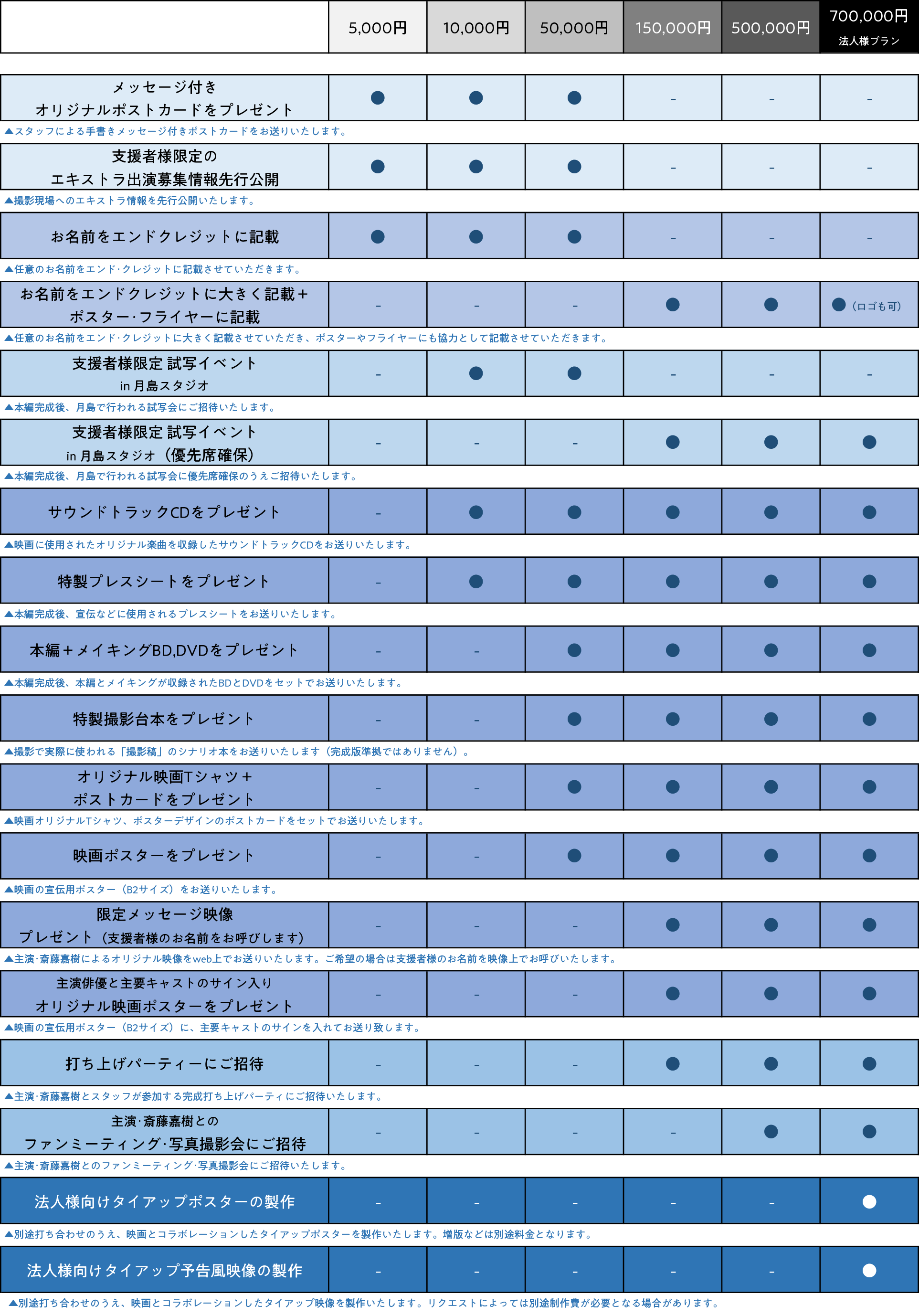本プロジェクトにおけるリターン内容は以下となります。