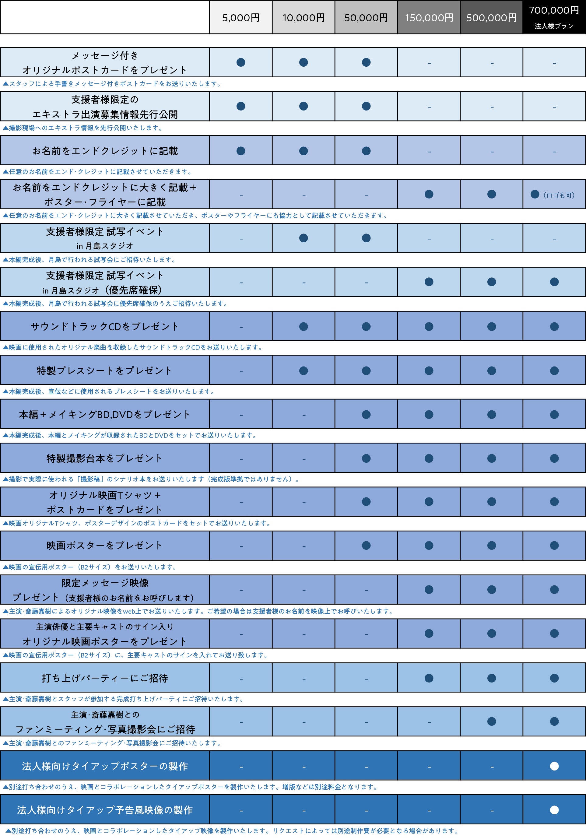 また製作発表のプレスが公開され、読売新聞オンライン・CINEMATOPICS・朝日新聞デジタル&M・SankeiBizなどに掲載されております。映画の公開手段が確定後、また改めてご報告いたします。リターンにつきましても6月より随時発送させて頂きます。よろしくお願い致します。支援者様は 2019年 4月 28日 23:59:59 まで募集しております。
