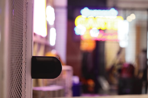A : 使用される環境にもより差は生じますが、障害物がない環境で約10メートル離れてのご使用が可能です。