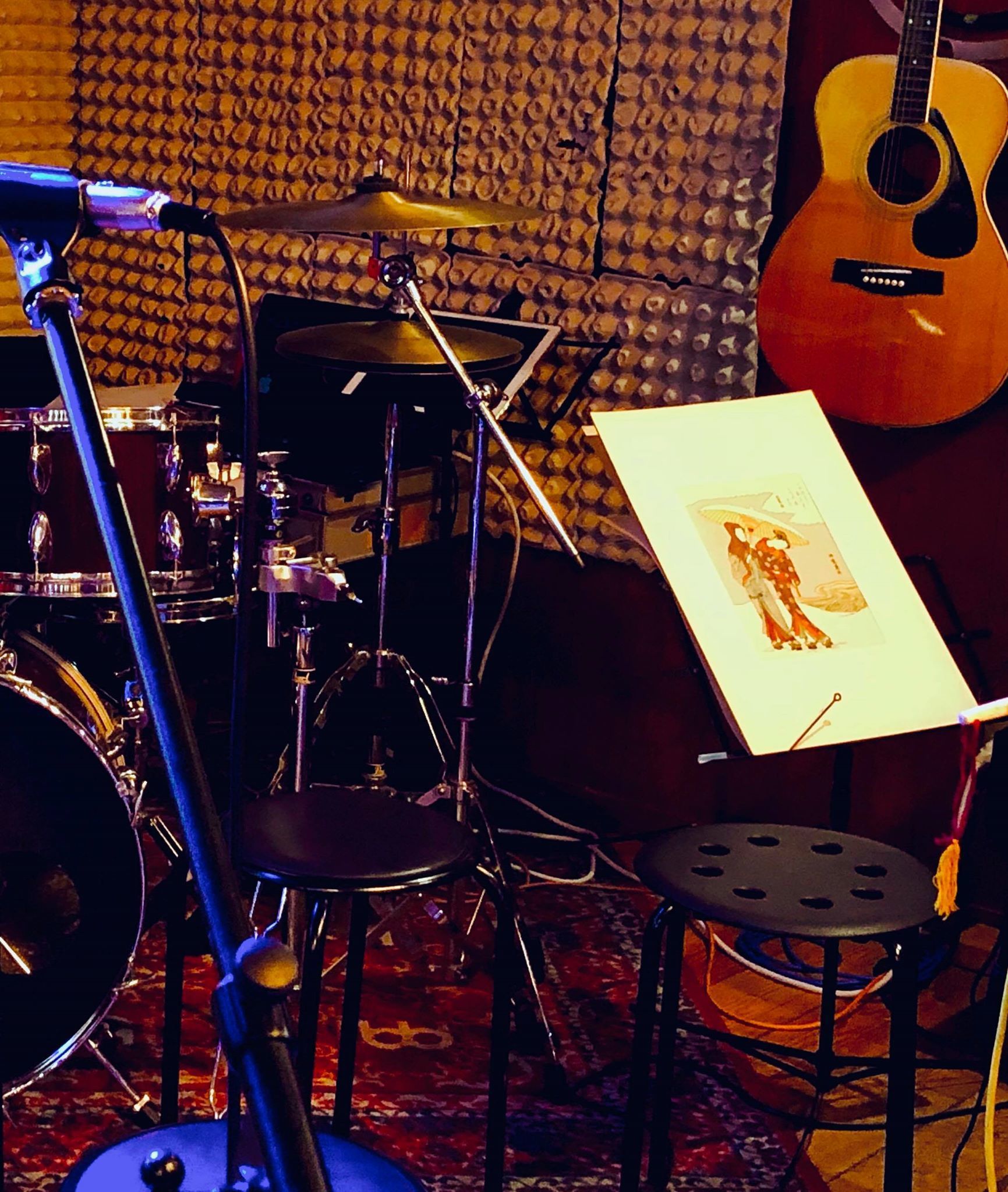 それはさておき、前回のキックオフパーティーのライブでは、ステージにはじめての浮世絵を並べてみました。