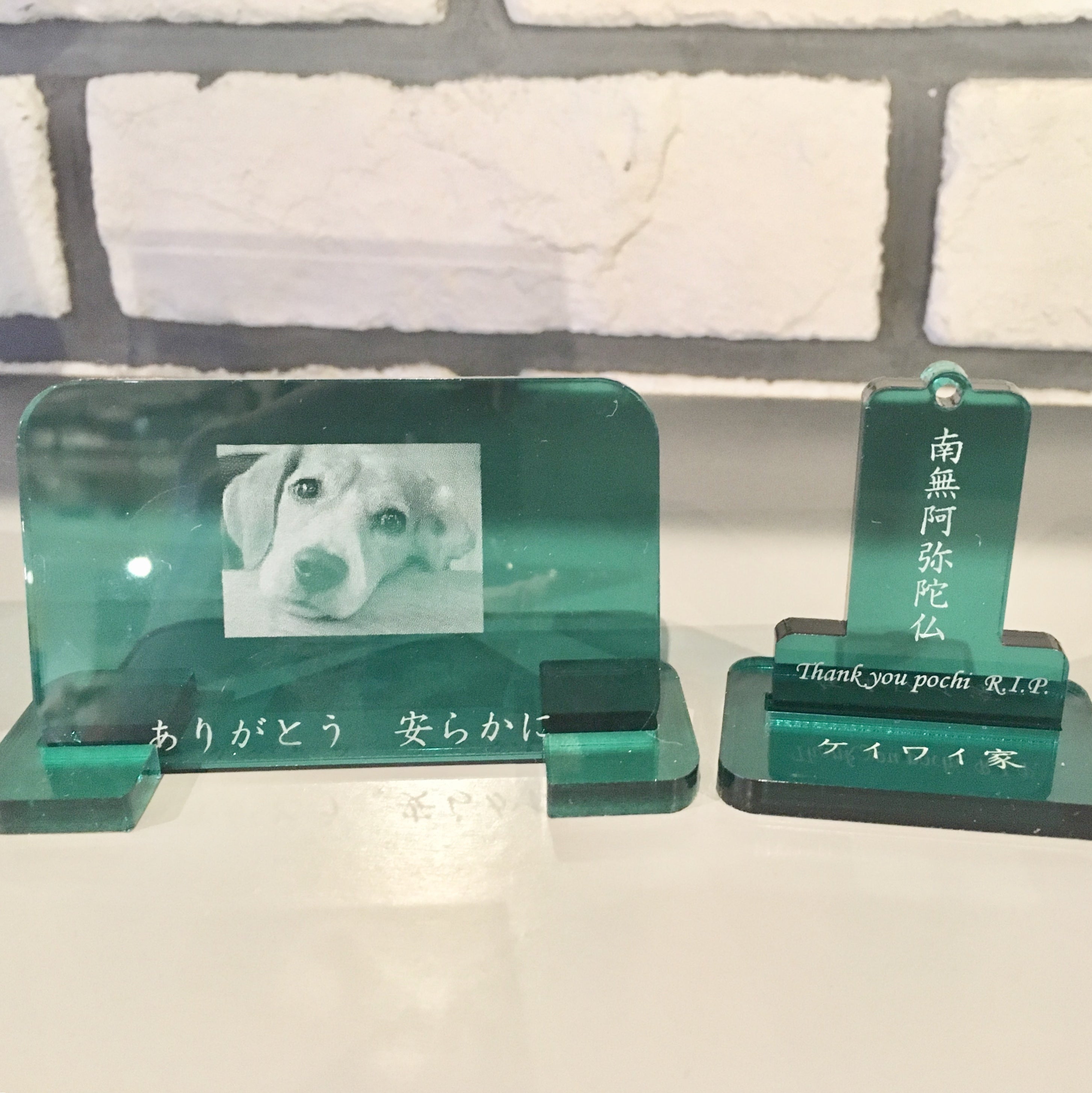 ミニお墓キーホルダーはクリアグリーンでもお造り出来ます(^^)漢字も英語も彫ることができます(^^)仏壇がなくとも本棚に『ミニお墓』