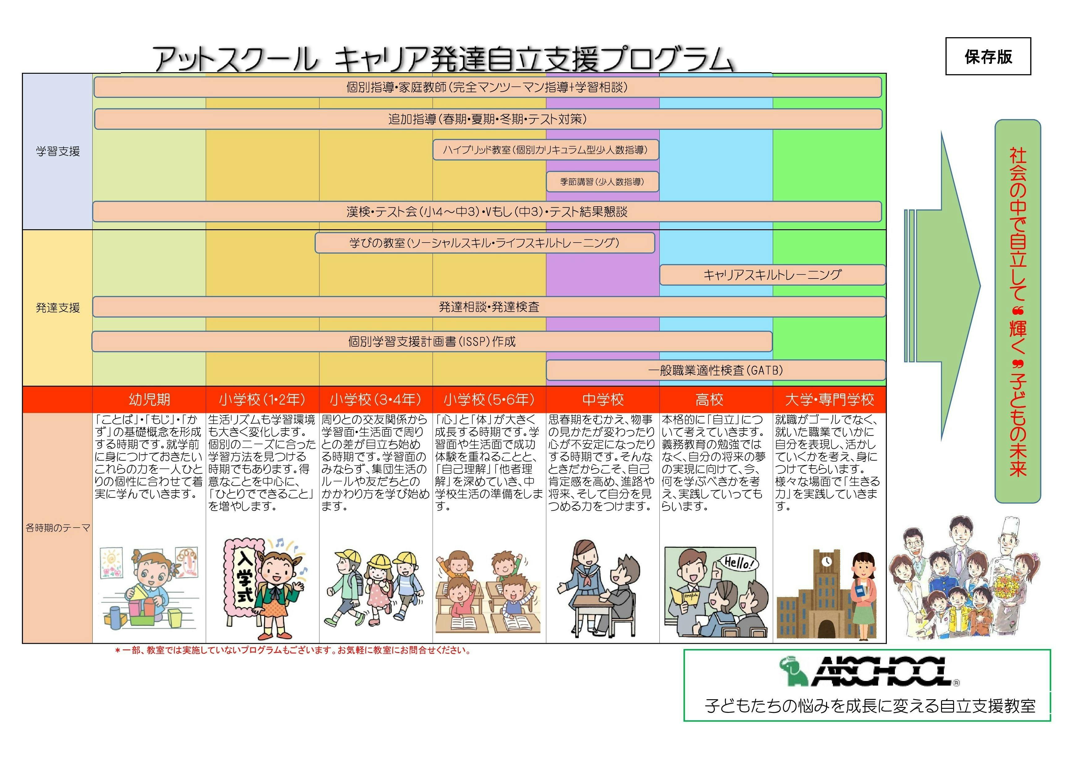 株式会社アットスクールは、2005年創業以来、児童生徒の社会的自立に向けた学習指導や発達支援に取り組んでいる民間教育団体です。児童生徒一人ひとりの個性とニーズに合わせた自立支援によって、『やる気・根気・元気』の芽を育てていくことを目標として、そのサポート機関として活動しています。
