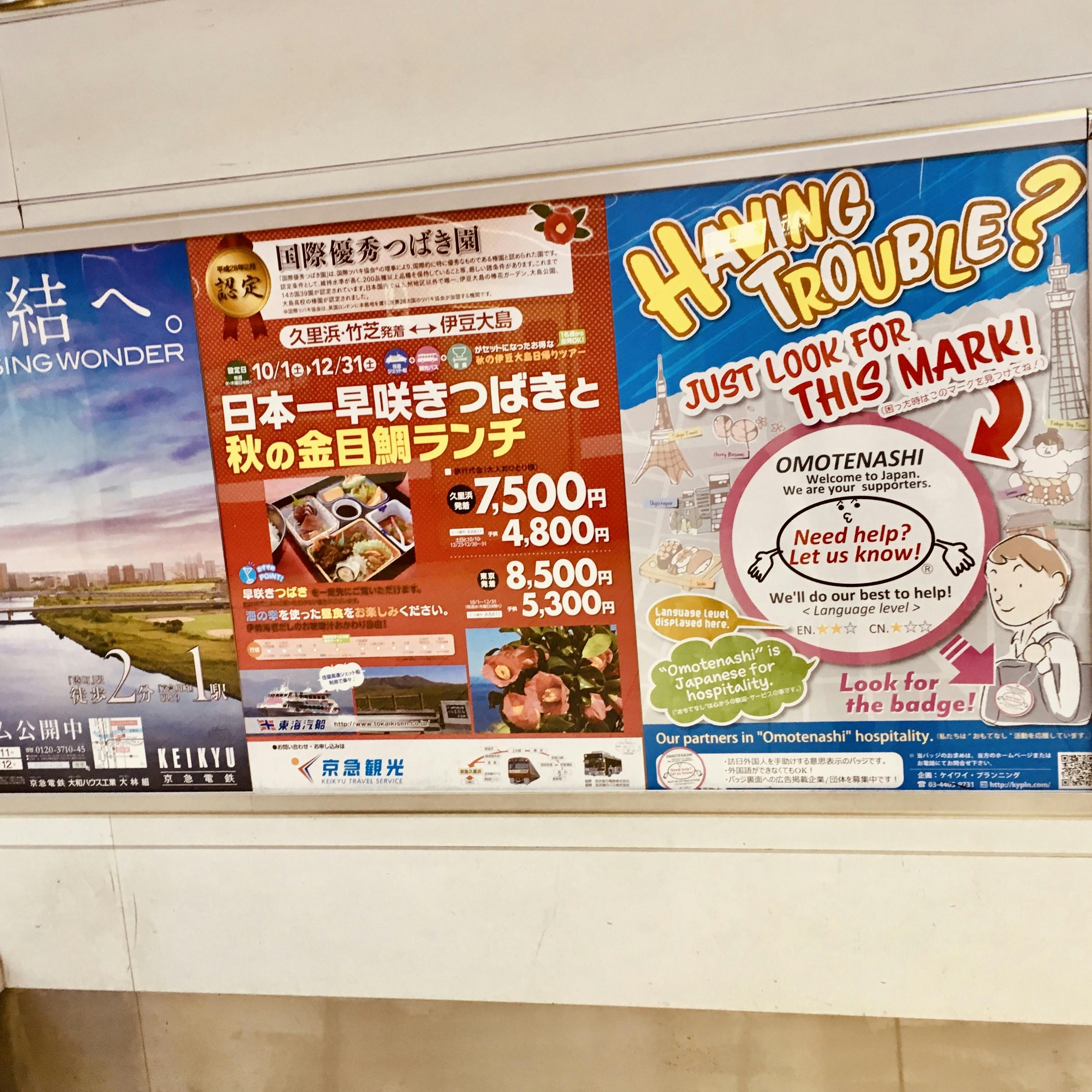 3年前のバッジ開発当初からポスターを自作し、浅草・江ノ島・羽田空港・品川といった観光・交通拠点に掲示し、これから増える外国人旅行客を支援する活動を、地道に広めてまいりました。