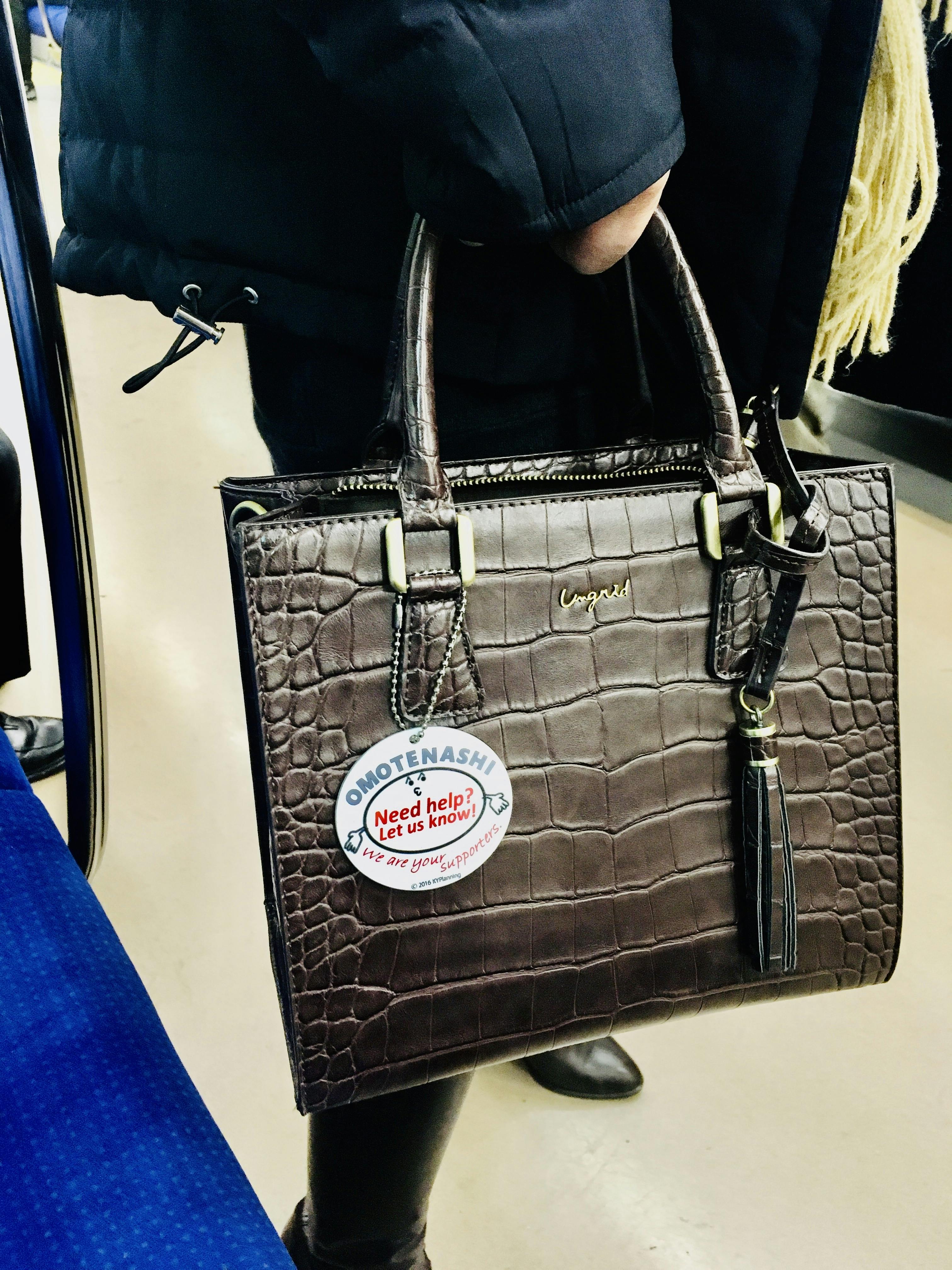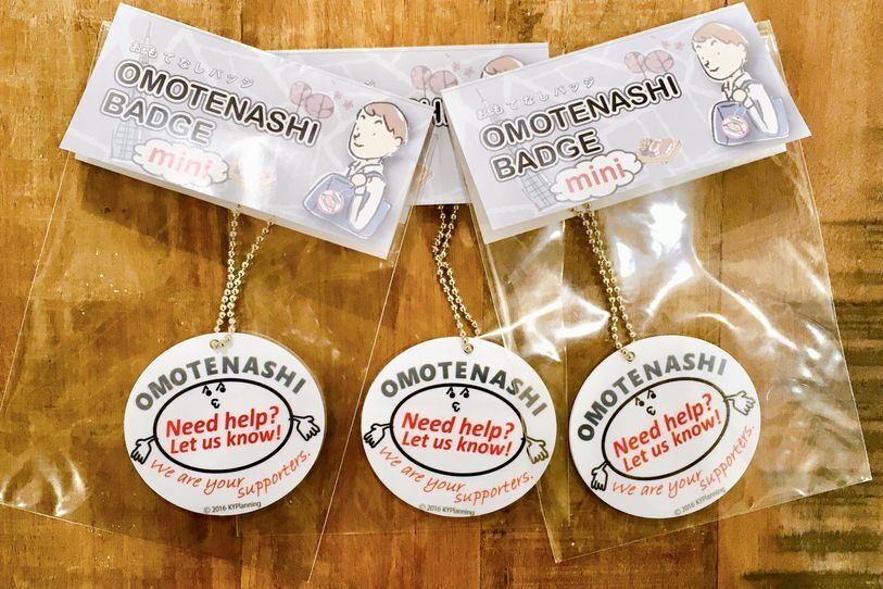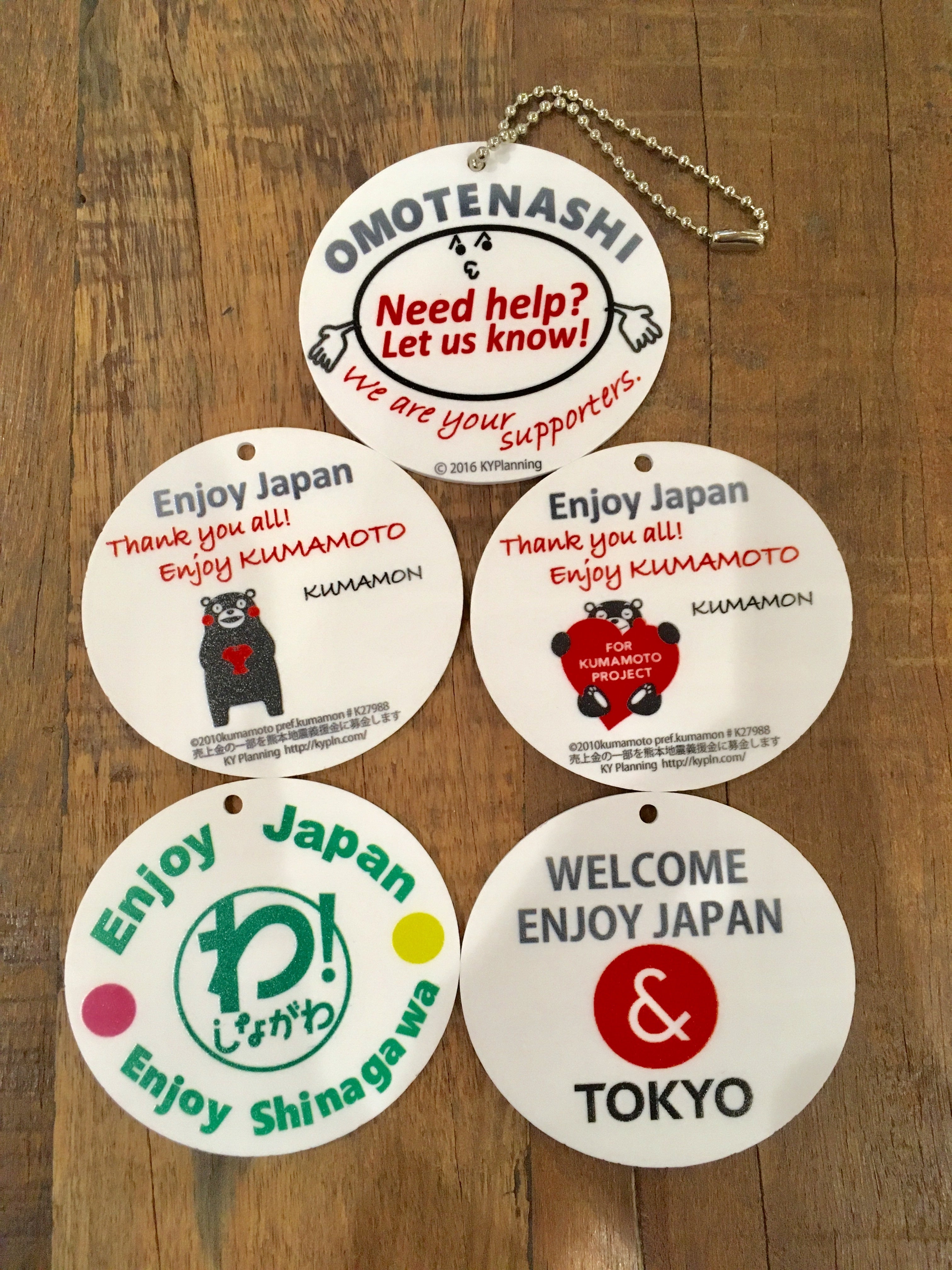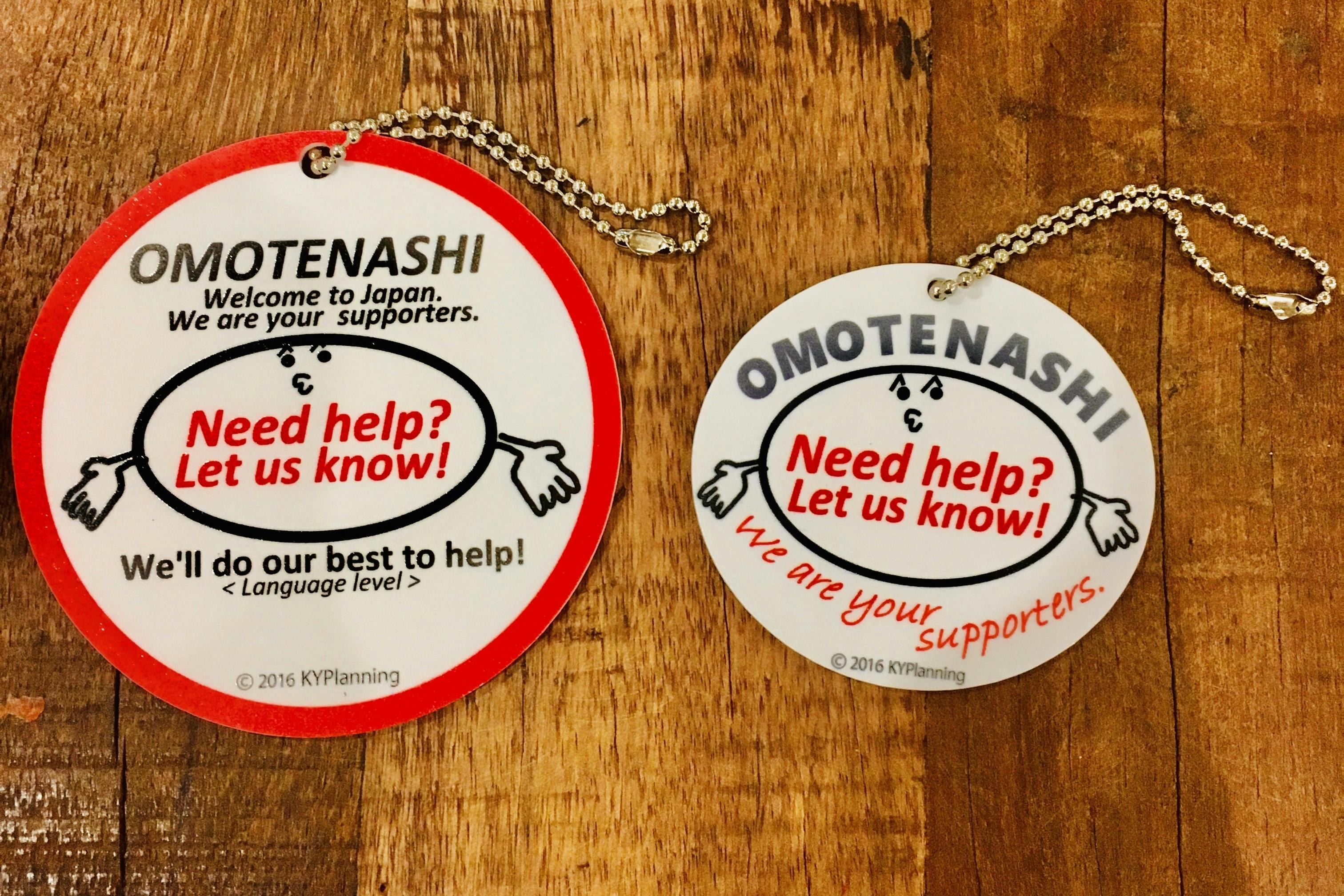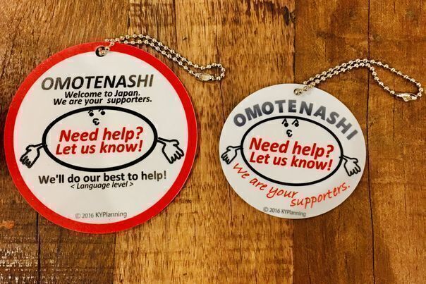 おもてなしバッジはカバンに着けても良し、普段はポケットに入れて困っている外国人を見かけたらにサッと差し出しても良し。
