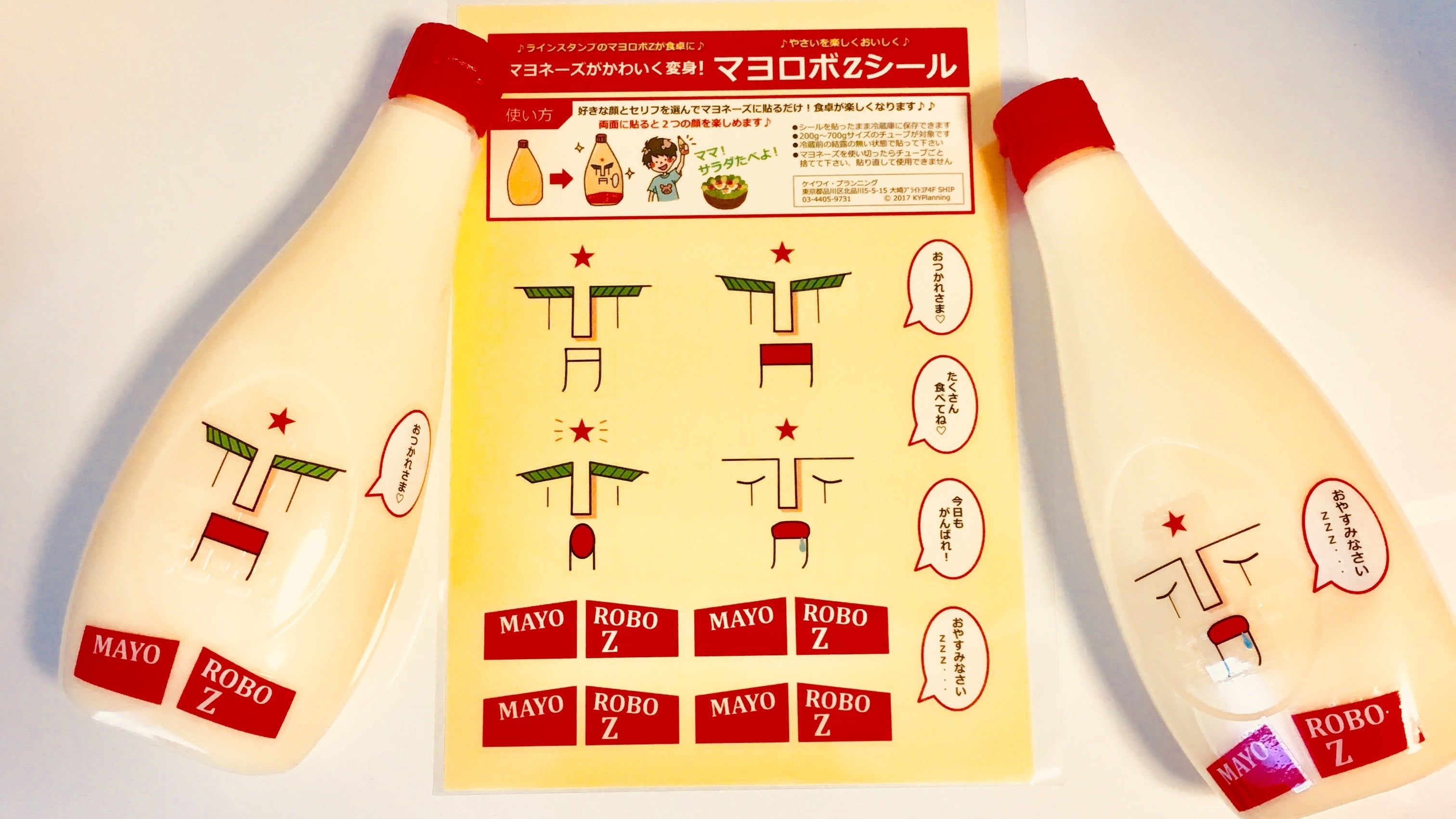 好きな顔とセリフを選んでマヨネーズに貼るだけ!食卓が楽しくなります。