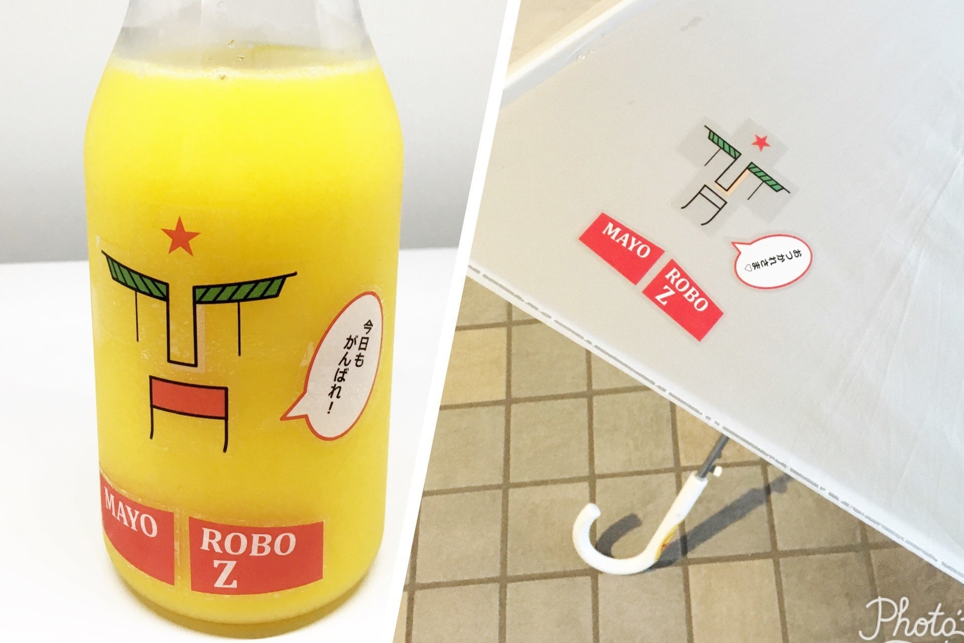 マヨネーズボトルがロボットに!? マヨネーズボトルの他、ビニール傘やパソコン・タブレット、飲料容器など様々なものをロボットにできます!セリフシールも付いてます。