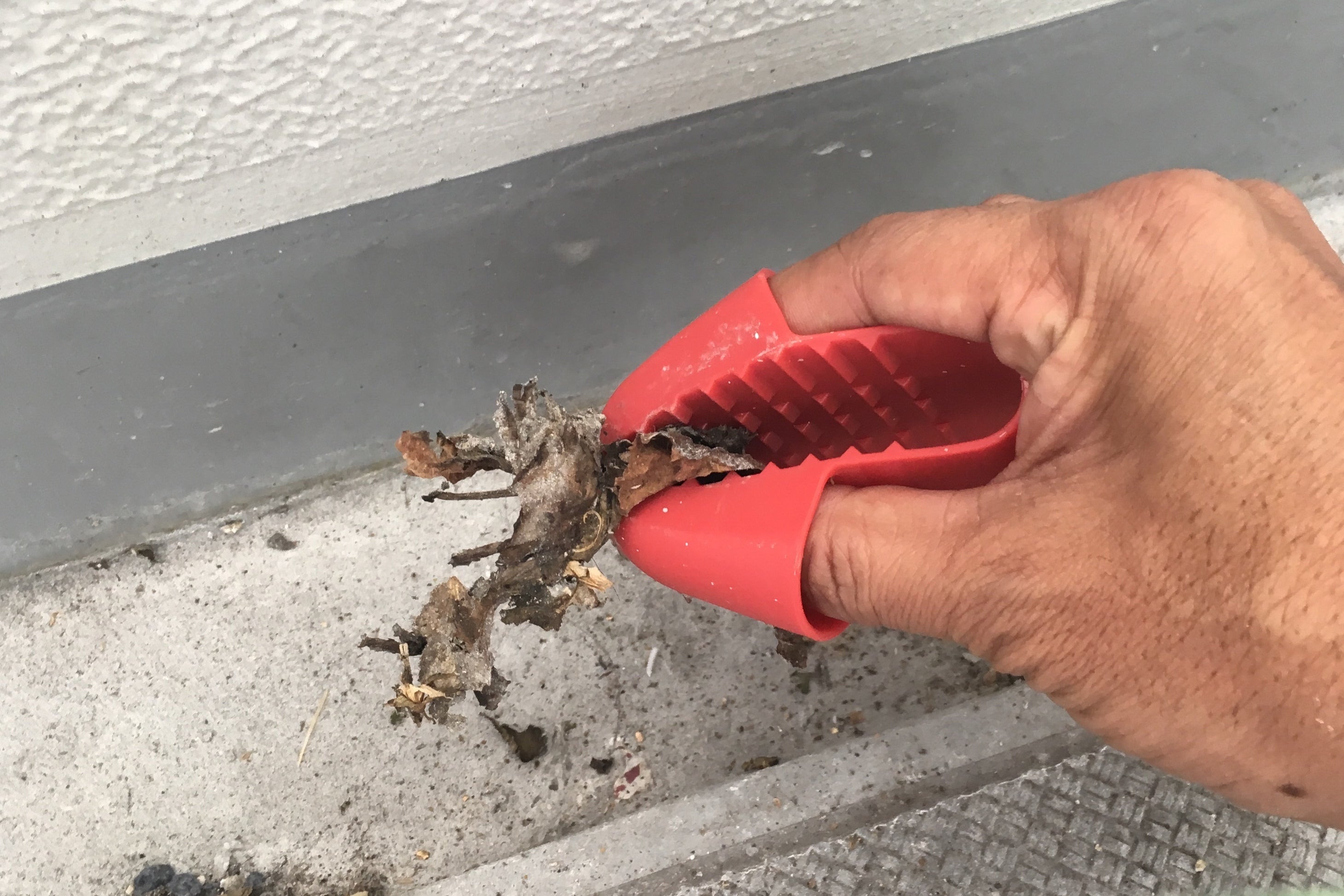 ベランダの側溝のお掃除、意外に面倒ではないですか?軍手をするのも面倒だし!!そんな時はフィンガートング(^.^)