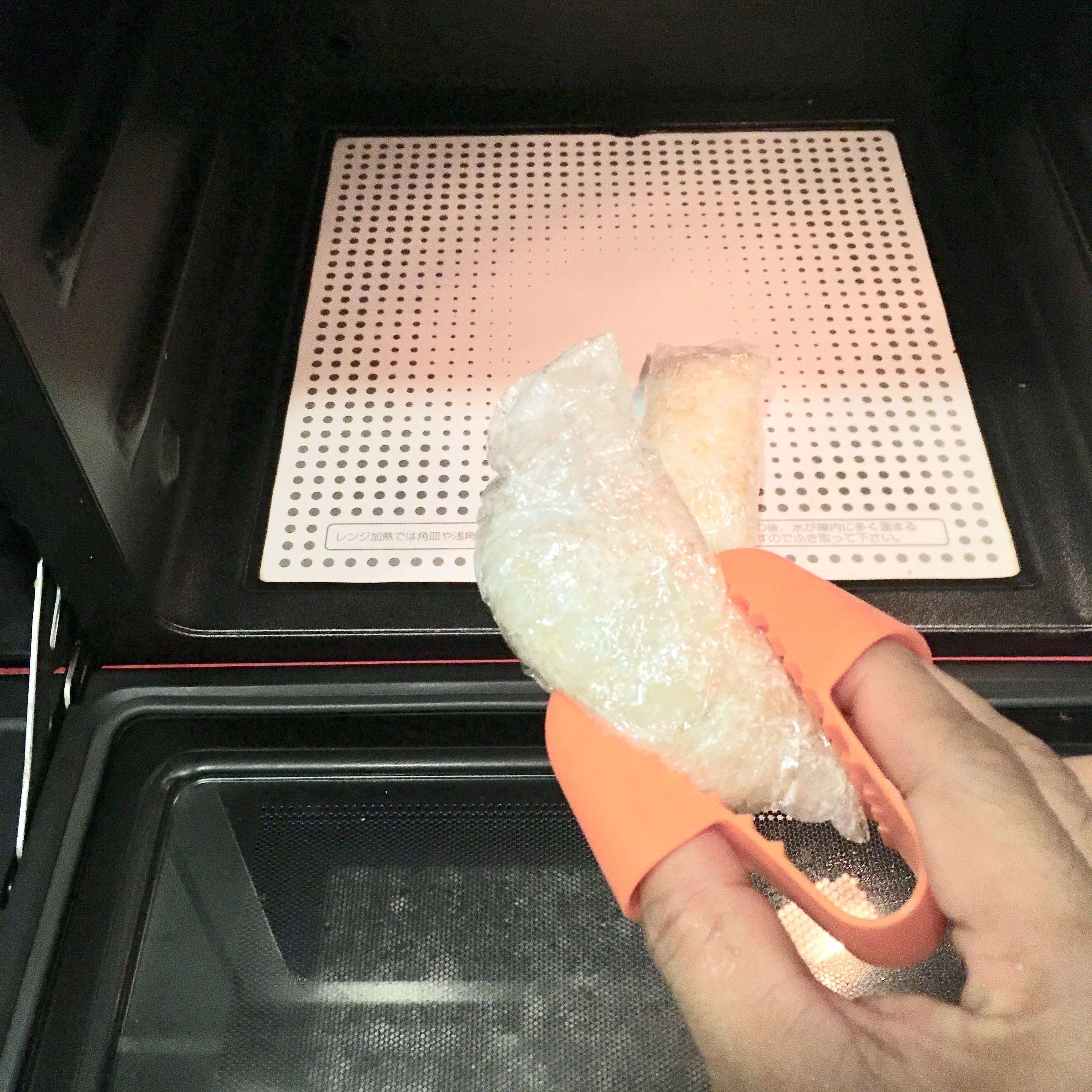 電子レンジレンジで温めた熱々の食品をフィンガートングで楽々取り出し(^^)