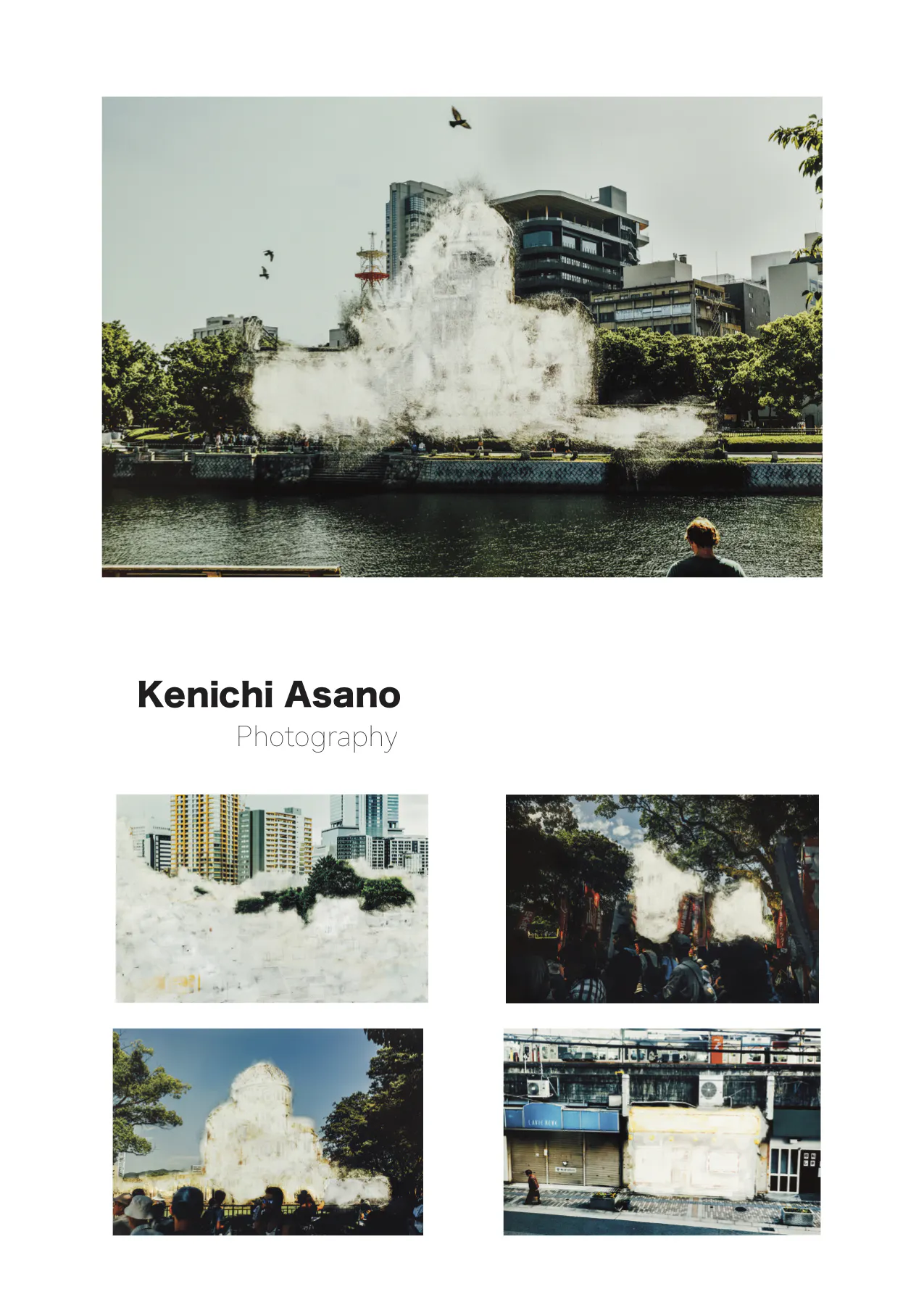 ▶︎浅野堅一 1979年広島出身。人の認識や記憶の曖昧さに興味を持ち人の生きる場所・空間を意識した作品を制作している。制作。企画展専門ギャラリー、 Gallery Node共同運営。2014年より写真家 所幸則氏に師事。・個展 「デルタのまほら」 (Yo-haku 広島)