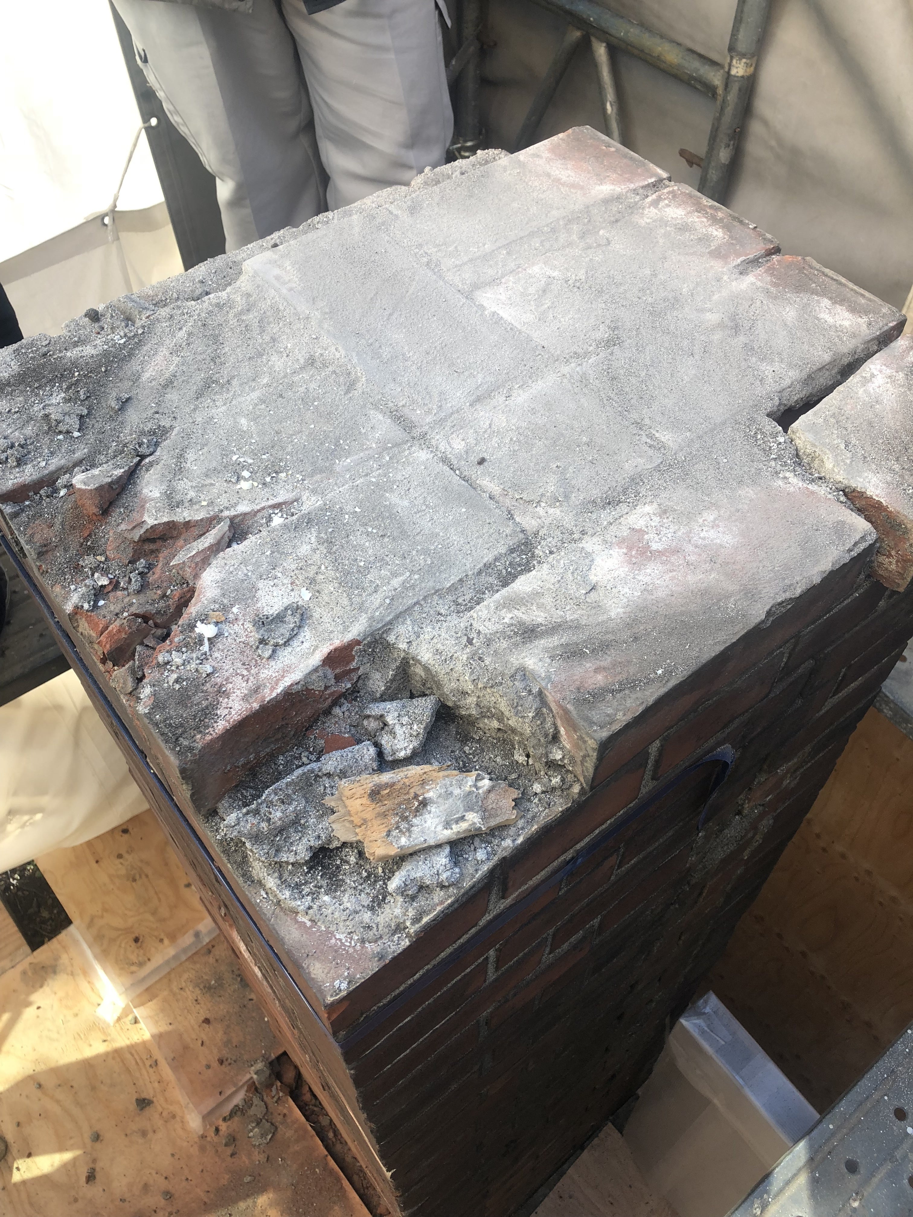そのような時に、近くの同時期に造られたと思われるレンガ柱の解体工事があり、その状況を見ることができたのです。その柱は、笠石を取ると、レンガが手で取り外せるほどの状態でした。