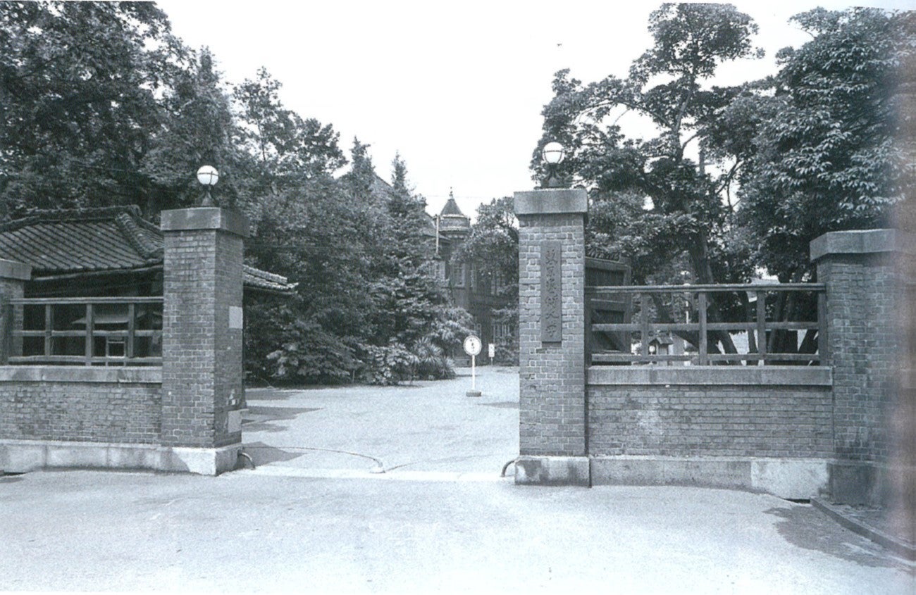 昭和45年(1970年)の正門(塀上部が木製の柵)(「東京芸術大学百年史 大学編」より)