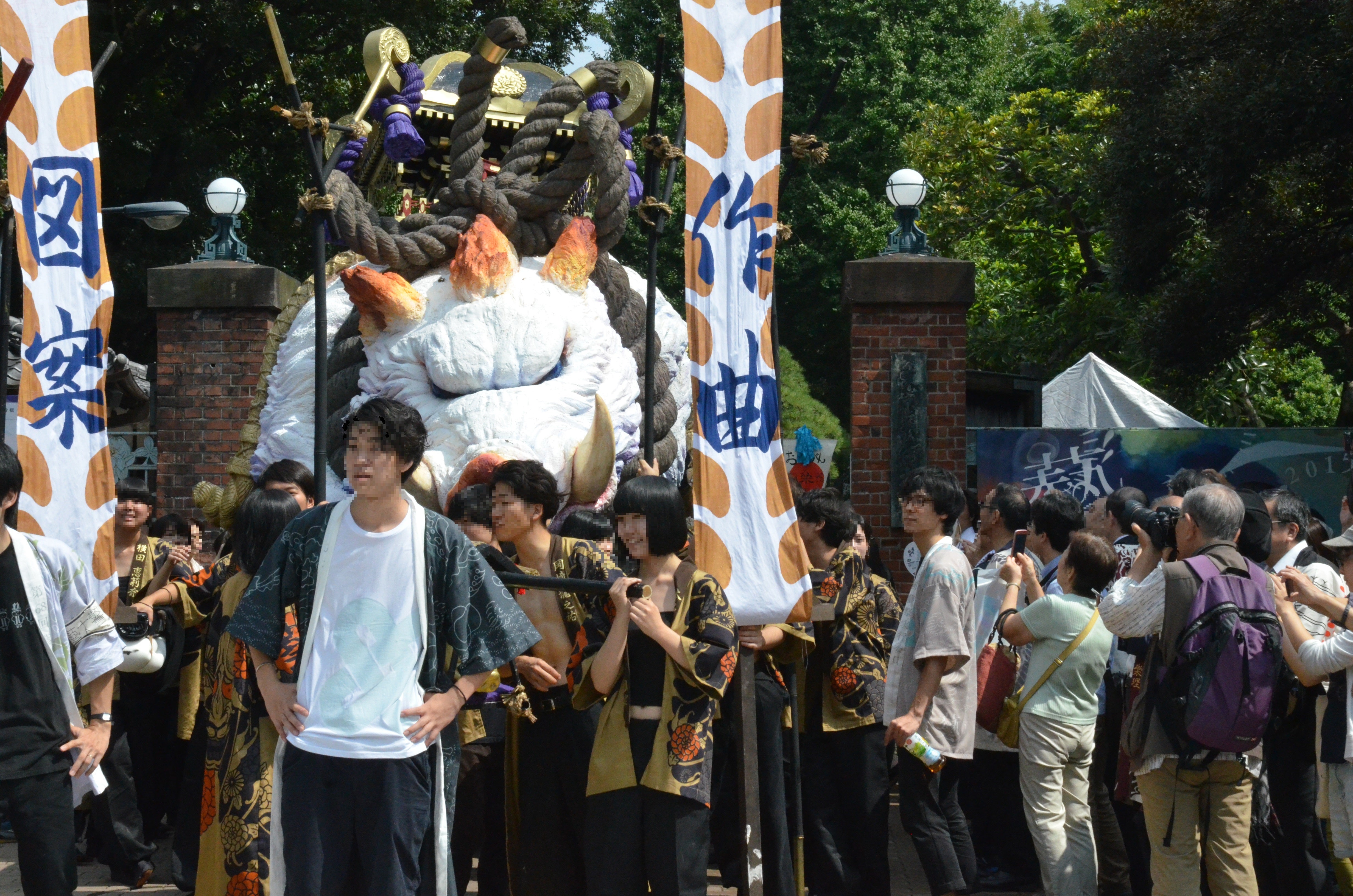 東京藝術大学の学園祭である「藝祭」では、学生たちが作った神輿が正門から出発して、上野公園内を巡ります。