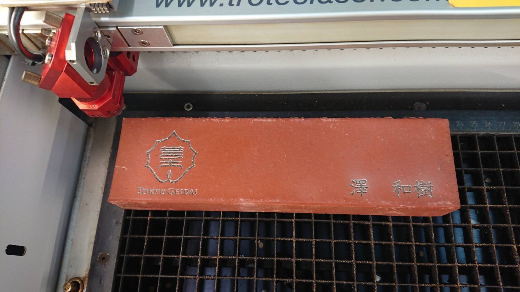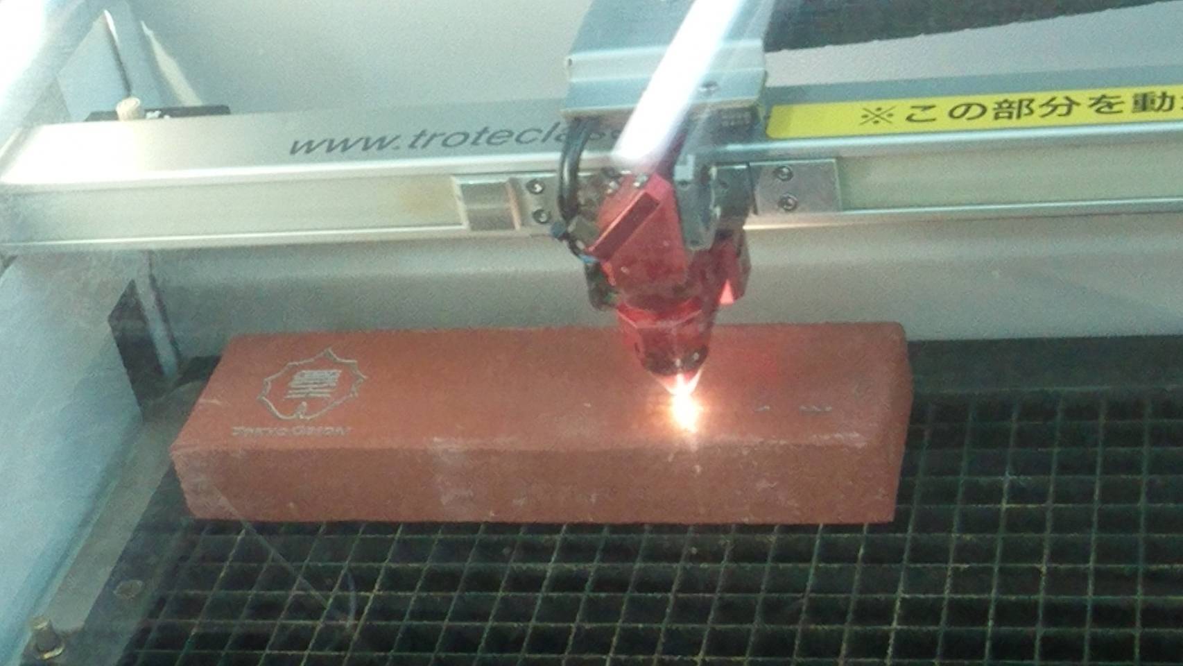 できあがった特注レンガにレーザー刻印を施しました。クラウドファンディングのリターンの一つで、支援者の方のお名前を正門に実際に使用するレンガに刻印するものです。