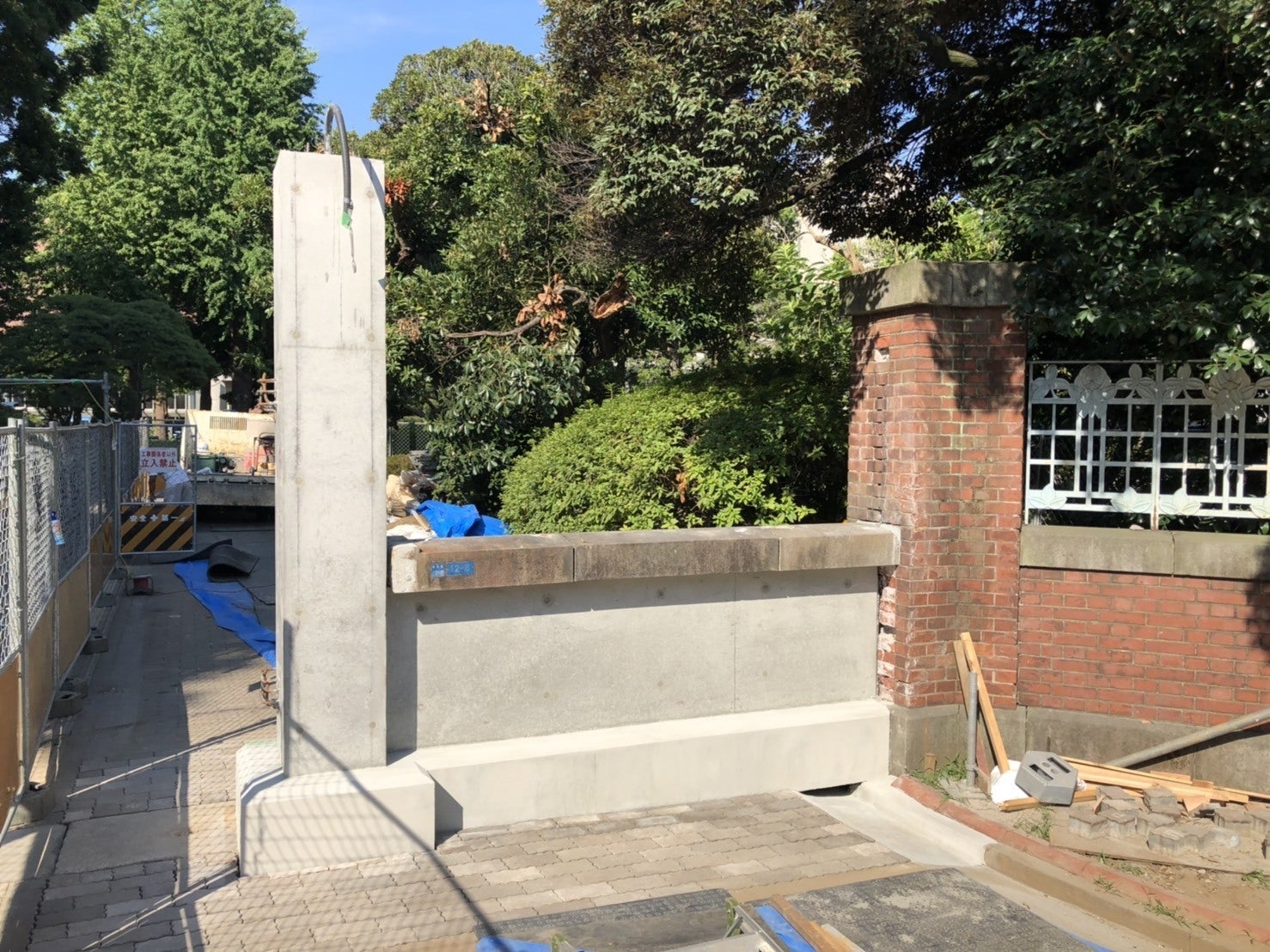 躯体はもうすぐできあがります。既存のレンガと新しいレンガを組み合わせ、どのような風合いの正門が完成するのか楽しみです。