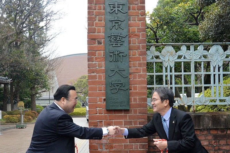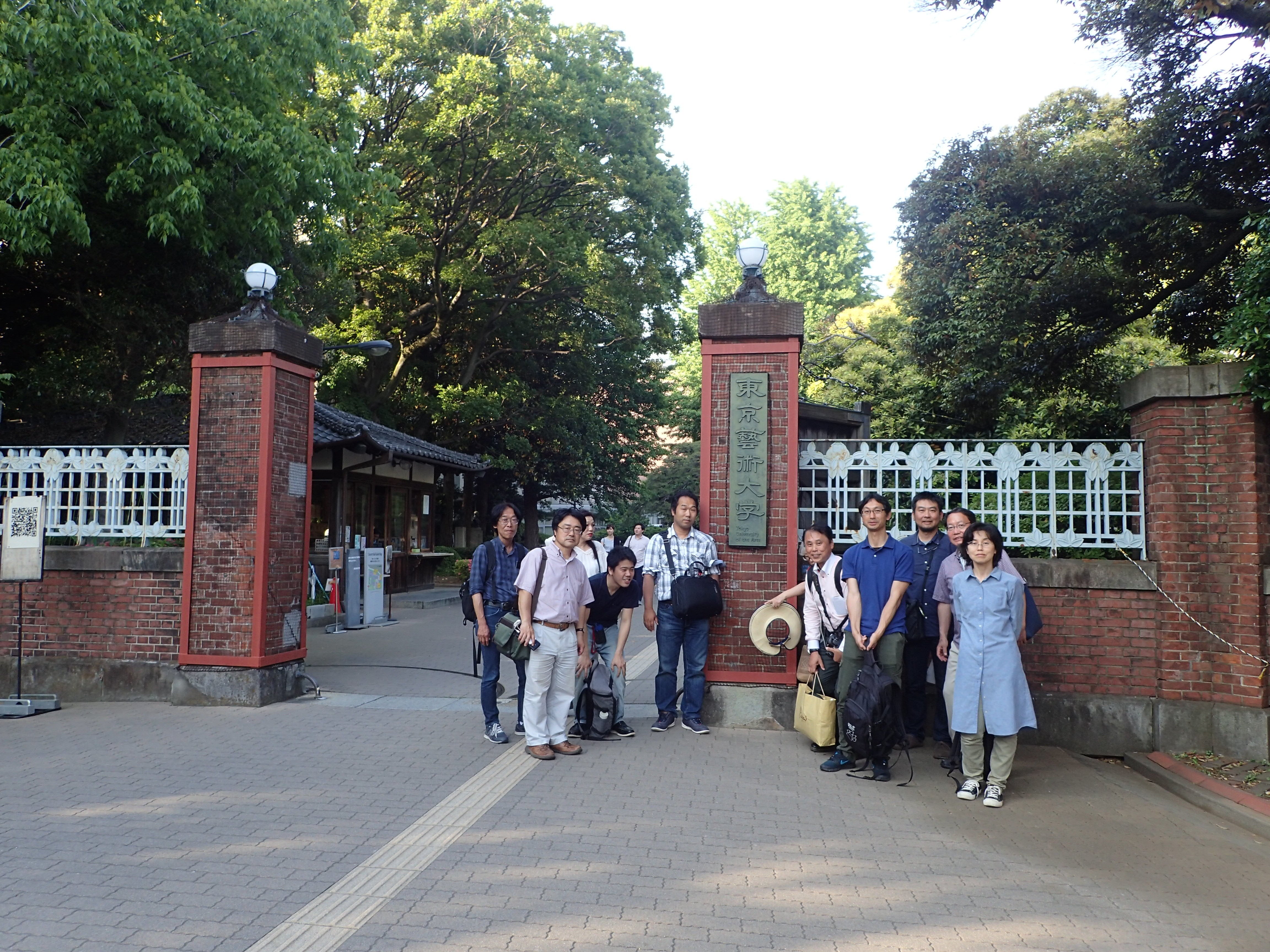 クラウドファンディング終了までの残りあと7日となりました。今回は、銘板について説明致します。この写真は、2016年3月に当時学長でした宮田文化庁長官が揮毫し学内の鋳金研究室(赤沼教授)にて製作・設置した際の除幕式での1枚となります。この時、宮田前学長が銘板について次のように述べられています。「これは古くからある書体の一つ、隷書で書きました。入学した当初から、と言っては大げさですが、随分と前からこの門標が古くなっている事が気になっており、この度、鋳金の赤沼先生や皆さんのお力添えで、新しくすることができました。以前のものを外してみた際に、大先輩である西 大由先生のお名前が刻まれていたことを確認し、ここに深く感謝を述べさせていただきます。そして、これから、この新しい文字で多くの学生らを迎え、送り出すことをとても嬉しく思います。」(藝大HPの記事より抜粋)貴重な製作時の写真もご紹介致します。鋳型に鋳込みしている瞬間 鋳型を割り、鋳物を取り出して確認銘板の横に名を刻む宮田文化庁長官最後に、西 大由先生作の先代の銘板がこちら。