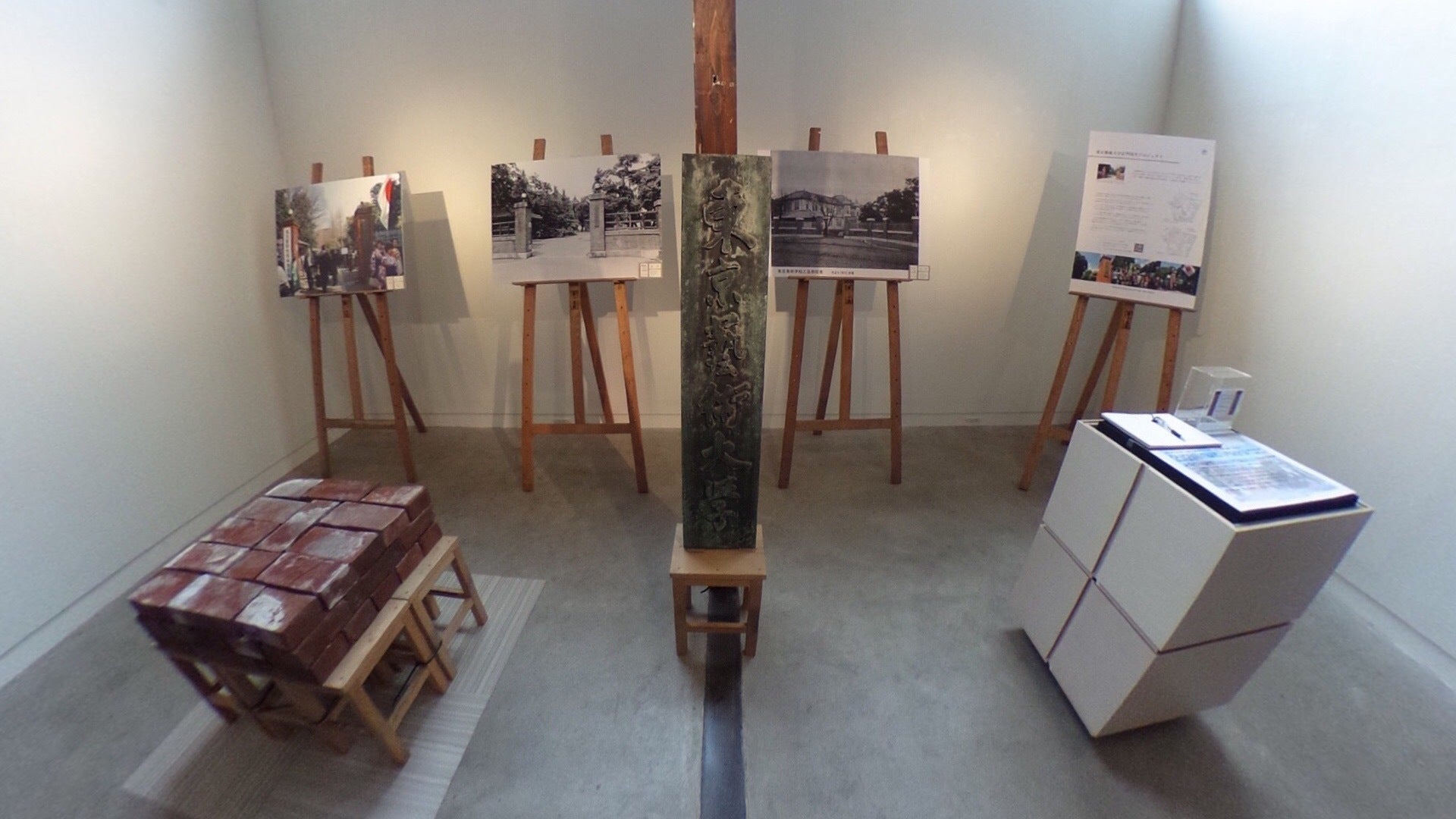 HAGISOで4月5日(金)まで展示中の東京藝術大学正門再生プロジェクト。 その展示内容を紹介します。 100年ほど前に制作されたレンガの展示です。実際のレンガ組みを再現し、柱の構造がわかるようになっています。 柱に立てかけてあるのは藝大正門に使用されていた銘板です。私が藝大生の頃は、毎日この銘板を見ながら通っていました。 展示パネルでは、銘板が実際に使用されていた当時の様子を伺い知る事ができます。大正~昭和~現在まで、時代の移り変わりとともに環境は変化しましたが、正門は変わらず藝大生を見守り続けています。 100年後も変わらず藝大生を送り出すために、正門再生プロジェクトを実施していきます。