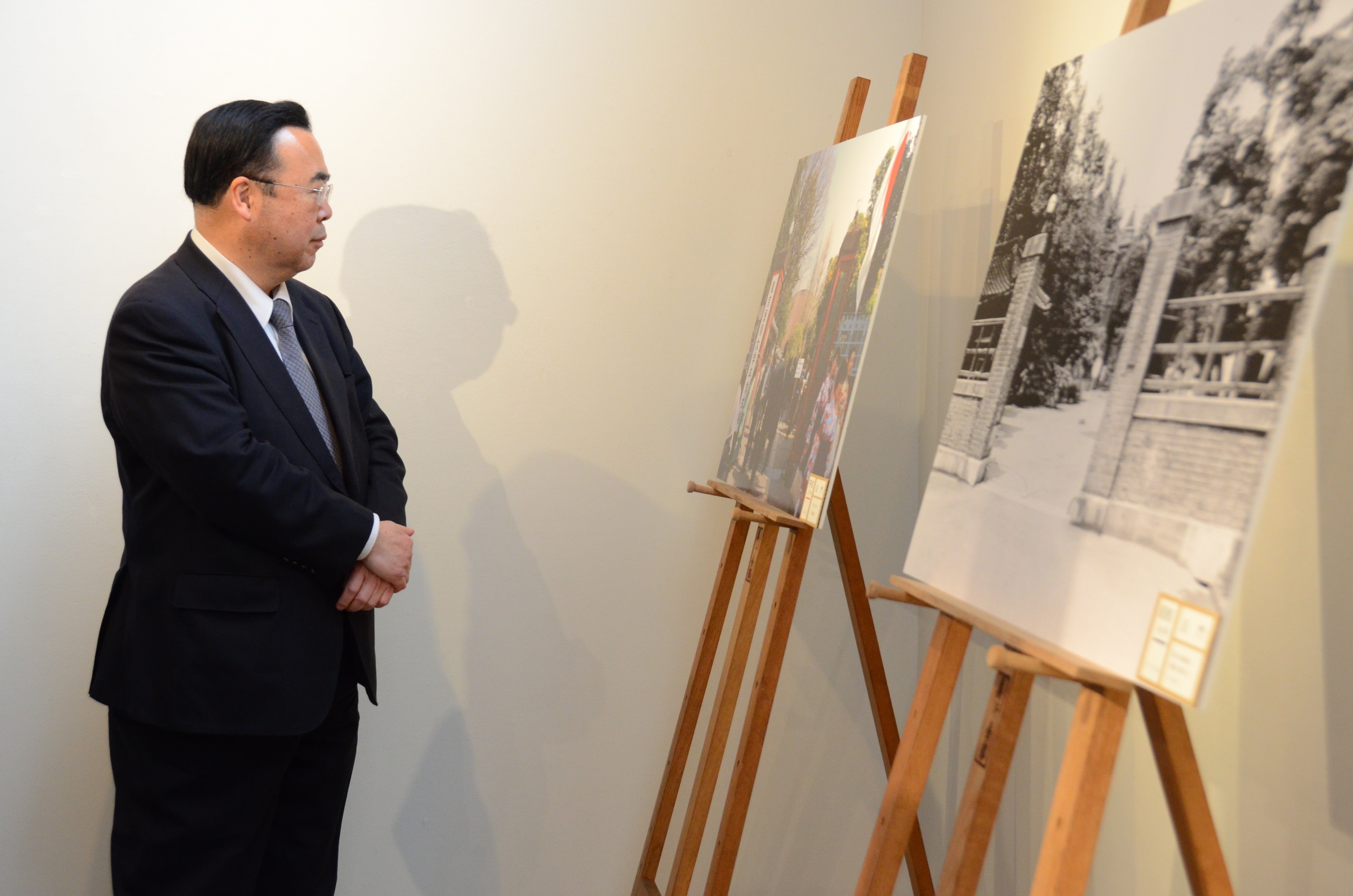 HAGISOにて本プロジェクトの関連展示が本日より始まりました。展示品としては以前の東京藝術大学の銘板、本学近くの同時期に造られたと思われるレンガ積み、大正・昭和・平成と時代ごとの正門写真パネルを4月5日まで展示しています。本学職員にて展示を実施したので手作り感を感じてください(笑)HAGISOの前にある岡倉天心記念公園の桜は満開に近づいております。桜の奥がHAGISOとなります。