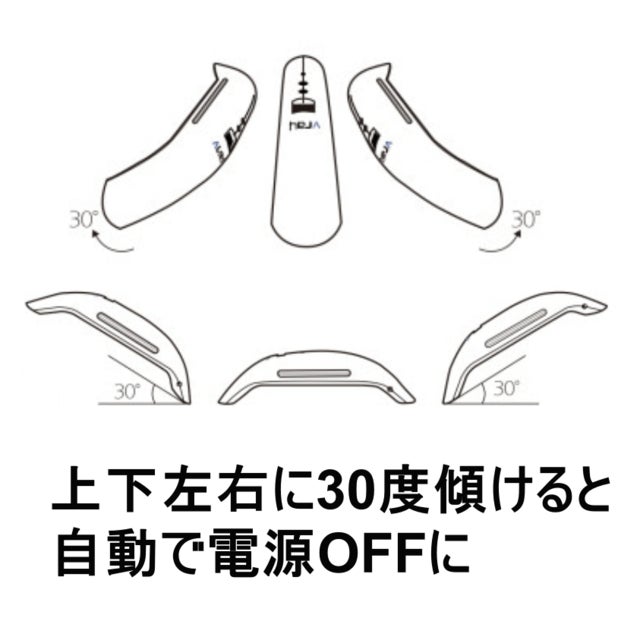Vrayは傾きを検知して自動で電源がOFFになる安全設計が施されています。もし小さなお子様やペットが使用中のVrayを倒してしまっても電源がオフになるので安心です。