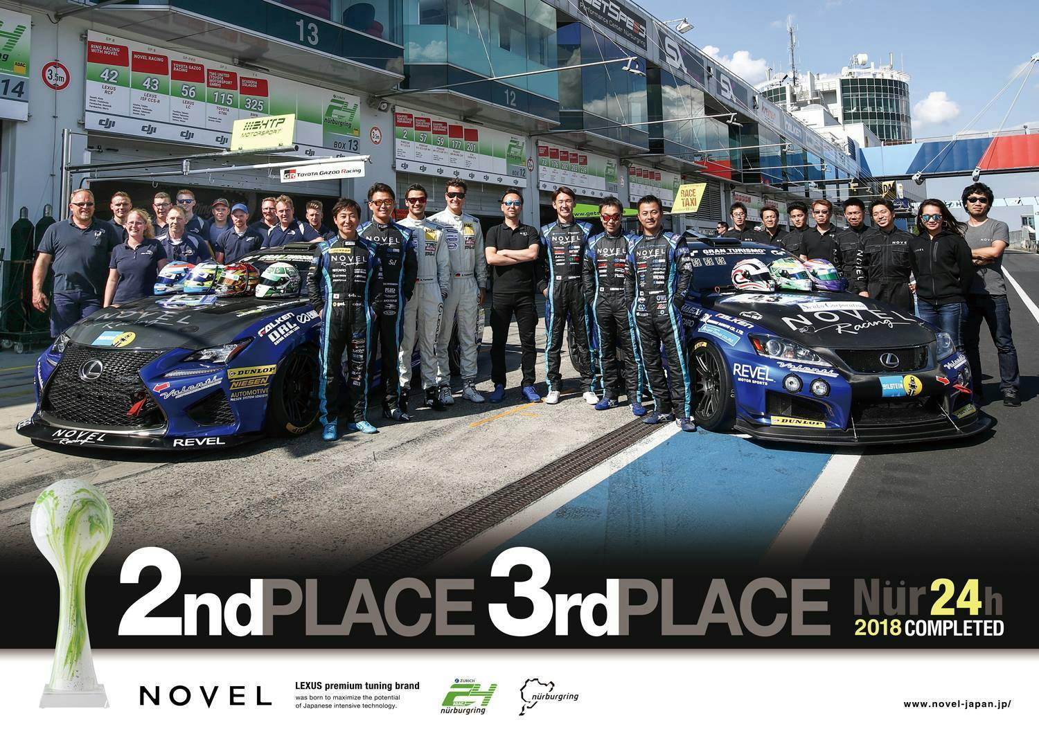 2018年シーズンは、マシンをLEXUS IS Fと新たにLEXUS RC Fの2台体制で挑みました。またドライバーにはニュルマイスターのドイツ人ドライバー、日本のS-GTで活躍している吉本大樹、佐々木孝太選手を起用し、ニュル24hでは日本勢最高位のクラス2位、3位の結果を得る事が出来ました。