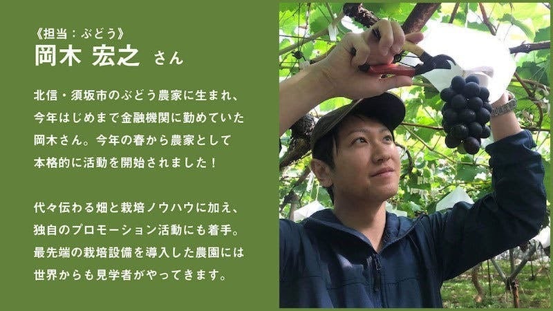 お届けするブドウを生産してくれる農家さんは、山ノ内町の青木さんと須坂市の岡木さんです!