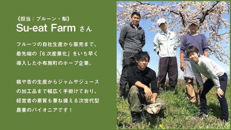 今回お届けする梨を生産するのは、小布施町のホープ企業・Su-eatさん、中野市のイケメンフルーツ農家・宮島さんです!