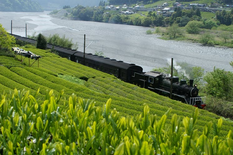 静岡県の中心部分に位置する川根本町は、本州で唯一の原生自然環境保全地域を保有する自然豊かな町です。町の中心には南アルプスを源にする大井川が流れ、茶畑や山々に囲まれた大井川沿線には「SL」が走っています。最近では「機関車トーマス」を再現したSLが話題になりました。