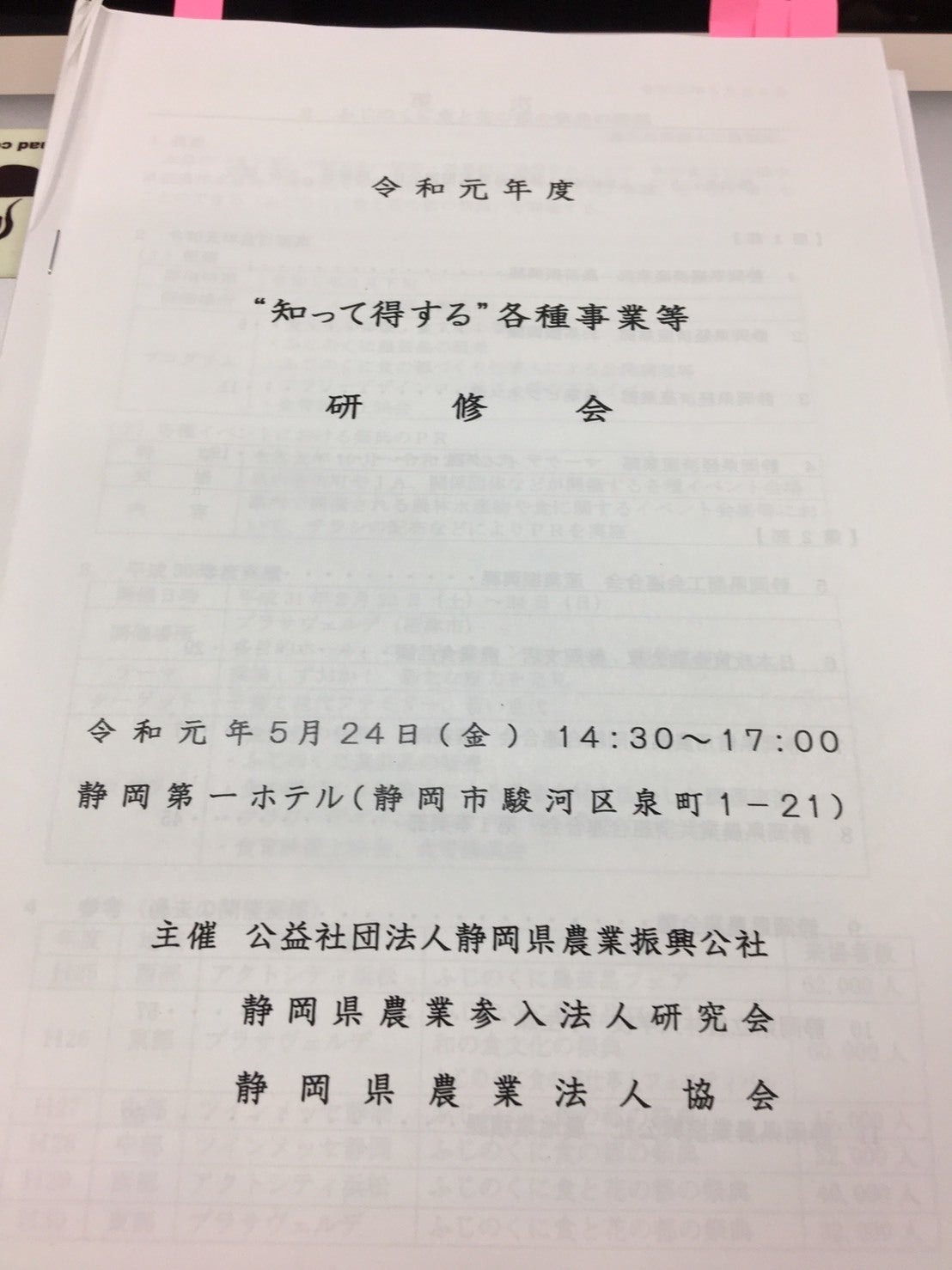 先週末に静岡県農業参入法人研究会に行ってまいりました。静岡県として農業に対して色々な補助金を提供していて、その説明を受けてきました。お役所は基本的に予算ありきで動くので、補助を受けたいと思った時に申請できないという点はなかなかもどかしいと感じることはありますが、いつにどんな補助金があるのかを抑えて置くことは重要なのでとても有意義な研究会でした!