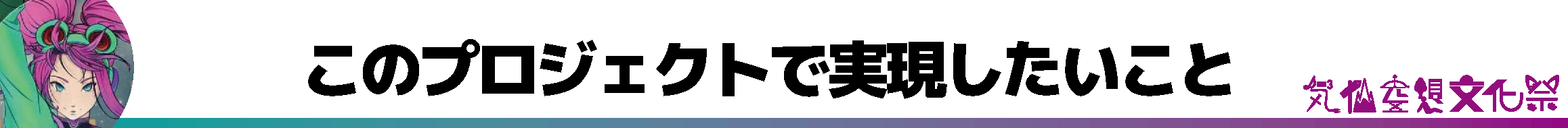 人々の空想を更に広げるコンテンツ文化(アニメ、アニメ特撮ソング、コスプレなど)を集約し、空想を主題に世代間、地域間を繋げることで気仙地域の復興を促進するためのプロジェクトです。「東北最大規模のサブカルイベント」として定着させ、年に一度の定期開催を実現化していきたいです!