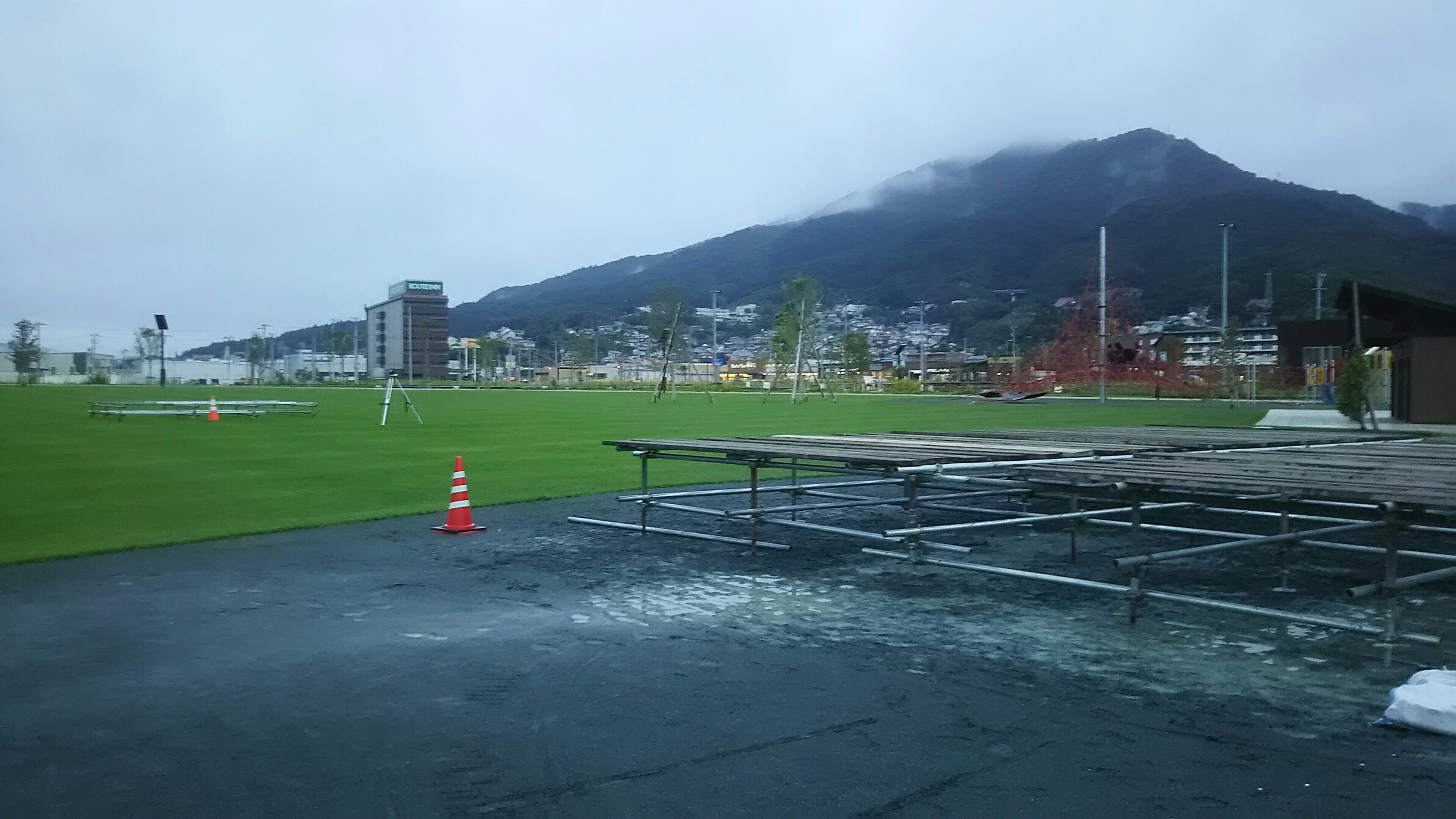 土曜日から始まったメーンステージ施工。現場へ行ってみて「もうすぐ始まるんだ…」と実感しました。