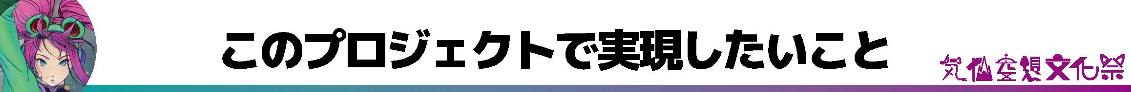 人々の空想を更に広げるコンテンツ文化(アニメ、アニメ特撮ソング、コスプレなど)を集約し、空想を主題に世代間、地域間を繋げることで気仙地域の復興を促進するためのプロジェクトです。「東北最大規模のサブカルイベント」として定着させ、年に一度の定期開催を実現化していきたいです!