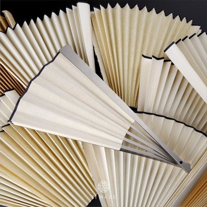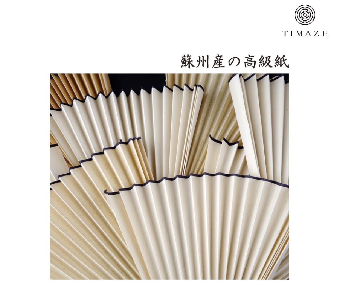 使用されている扇子の紙は蘇州産の高級紙。金箔付きだったり、黒色であったりと紙にもバリエーションがあります。扇子の骨組み部分に合うように加工しています。