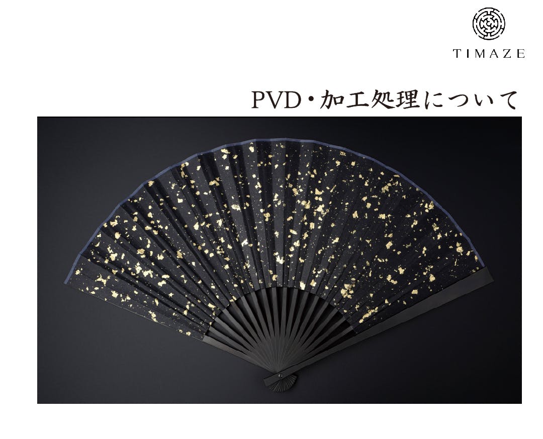 PVDとは「Physical Vapor Deposition」の頭文字を取ったもので、金属の表面処理技術の一つです。高級時計に使われることも多い新技術で、この加工を施すことで製品は独特で美しい黒色になります。チタンにこの技術を施すことで、元々高い非アレルギー性をさらに高めることができます。